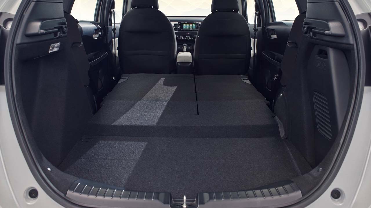 Το Honda Jazz επέστρεψε σε αυτή την γενιά στις ρίζες του. Ναι! Τότε που χάναμε το μέτρημα στις ποτηροθήκες και τα ντουλαπάκια. Και αυτό γιατί σύμφωνα με τη μάρκα, κατά την εξέλιξη του νέου Jazz, οι μηχανικοί της Honda συνεργάστηκαν με την ομάδα των σχεδιαστών με σκοπό να διατηρηθούν τα κορυφαία επίπεδα ευρυχωρίας, που ήταν χαρακτηριστικό γνώρισμα των προηγούμενων γενιών. Ειδικά της πρώτης και της δεύτερης γενιάς θα έλεγα εγώ. Η χωρητικότητα του χώρου αποσκευών (με τα πίσω καθίσματα σε όρθια θέση) ξεκινά από 298 λίτρα και φτάνει μέχρι τα 1.203 λίτρα (πίσω καθίσματα αναδιπλωμένα, μέτρηση μέχρι την οροφή). Αυτό επιτεύχθηκε με την έξυπνη διάταξη των εξαρτημάτων του υβριδικού συστήματος στο πλαίσιο και στο χώρο του κινητήρα. Κάτι το οποίο έπαιξε σημαντικό ρόλο στη μεγιστοποίηση του χώρου της καμπίνας ήταν η τοποθέτηση του ρεζερβουάρ καυσίμου στο κέντρο του πλαισίου κάτω από τα εμπρός καθίσματα (τα πλεονεκτήματα του να μην μοιράζεσαι πλατφόρμα με άλλες εταιρείες είναι αυτά και πρέπει να τα εκτιμούμε). Με τον τρόπο αυτό, το Jazz διατηρεί τα εξαιρετικά ευέλικτα πίσω καθίσματα Magic Seats που παρέχουν δυνατότητα αναδίπλωσης της πλάτης ή του εδράνου. Στην πλευτά του συνοδηγού έχουμε δύο ντουλαπάκια, ενώ ποτηροθήκες υπάρχουν στα άκρα του ταμπλό αλλά και στην κεντρική κονσόλα.