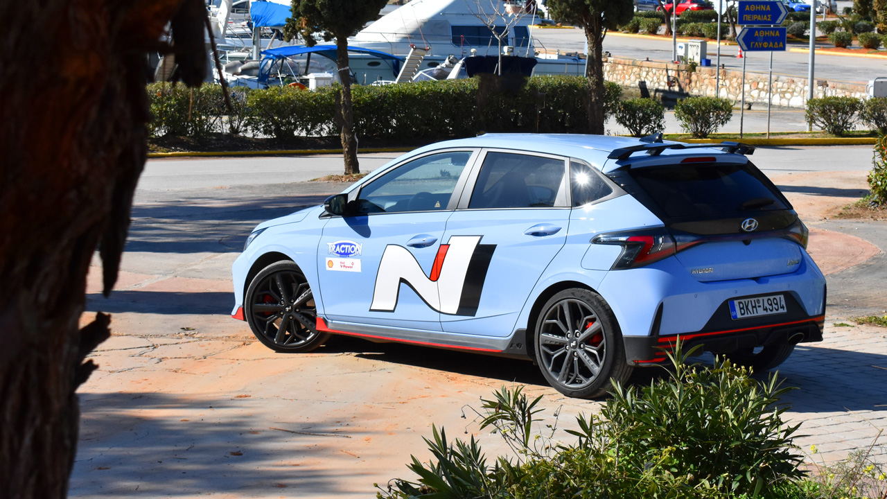Η πρώτη θετική εντύπωση οδηγώντας το Hyundai i20 N έρχεται από το βολικό κάθισμα και το τιμόνι με την πιο “γρήγορη” κρεμαγιέρα από αυτή της απλής έκδοσης. Η πληροφόρηση που προσφέρει είναι εξαιρετική και ο οδηγός απολαμβάνει ένα αποτελεσματικό και ακριβές εμπρός σύστημα. Σε αυτό σίγουρα συμβάλλει και το διαφορικό περιορισμένης ολίσθησης του εμπρός άξονα. Από εκεί και πέρα, το πλαίσιο είναι άκαμπτο και η ανάρτηση εξαλείφει την οποιαδήποτε κλίση του αμαξώματος. Ενδεχομένως να φανεί σκληρή αρχικά, αλλά σίγουρα σε ένα αυτοκίνητο που γεννήθηκε για να “καταπίνει” την μία στροφή μετά την άλλη δικαιολογείται απόλυτα. Πάμε στον κινητήρα, ο οποίος δείχνει τα δόντια του από τις χαμηλές στροφές και επιταχύνει το αμάξωμα σταθερά και έντονα σε όλο το φάσμα των στροφών. Bonus η ηχητική πανδαισία και τα σκασίματα της εξάτμισης όταν ο οδηγός αφήνει το πεντάλ του γκαζιού. Κάτι τέτοιο βέβαια, γίνεται μόνο στο Sport πρόγραμμα οδήγησης. Και μιας και αναφερθήκαμε στα modes, να αναφέρουμε ότι υπάρχουν τα εξής πέντε: Eco, Normal, Sport, N και N Custom. Στη λειτουργία Ν Custom μπορείτε να εξατομικεύσετε το σετάρισμά σας επιλέγοντας διαφορετική συμπεριφορά σε παραμέτρους όπως το σύστημα διεύθυνσης, ο ήχος της εξάτμισης, η απόκριση του κινητήρα και το ηλεκτρονικό έλεγχο ευστάθειας (ESC). Το κιβώτιο έχει μικρές διαδρομές επιτρέποντας γρήγορες αλλαγές, ενώ τα φρένα αποδείχθηκαν εξαιρετικά, τόσο σε αίσθηση, όσο και σε αποτελεσματικότητα. Για το τέλος άφησα την ύπαρξη “rev matching”, το οποίο ουσιαστικά δίνει μία γκαζιά στο κατέβασμα σχέσης συγχρονίζοντας στροφές σασμάν και κινητήρα (αυτόματο “μύτη-τακούνι” για τους πιο μυημένους), αλλά και το “Launch Control” για πιο αποτελεσματικές επιταχύνσεις.