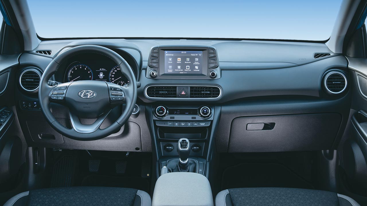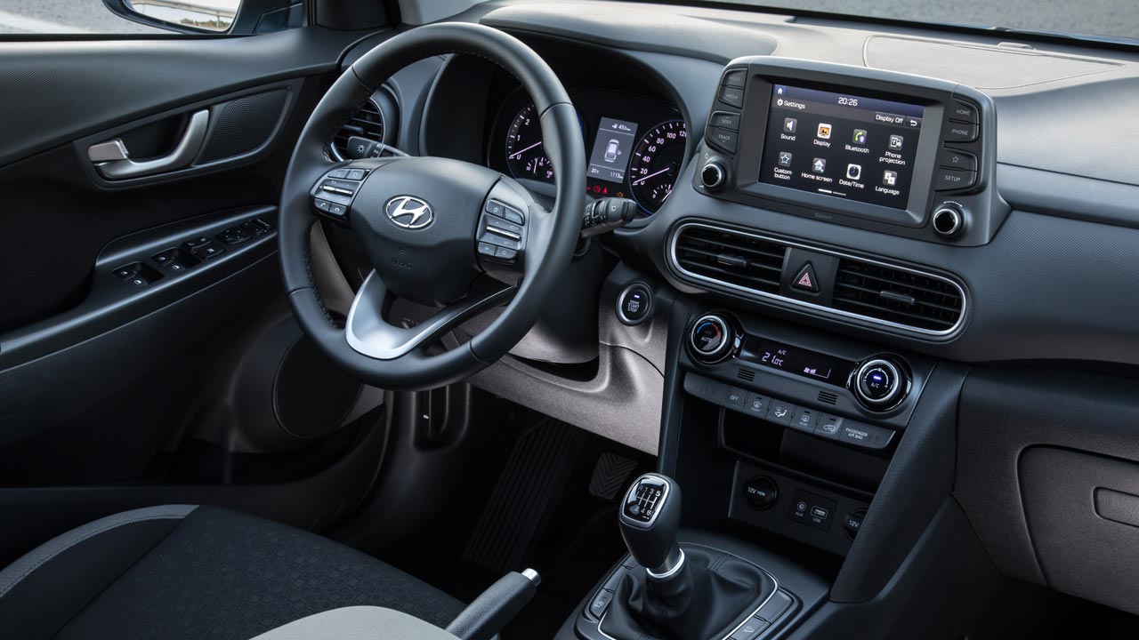 Στην ενδιαφέρουσα εμφάνιση του Kona συμβάλλουν τα άβαφα προστατευτικά πλαστικά περιμετρικά του αμαξώματος. Στο ίδιο πνεύμα φρεσκάδας και το εσωτερικό, που είναι διαθέσιμο με τρεις διαφορετικές αποχρώσεις – μάλιστα στην επιλογή Lime και Red συνδυάζονται έγχρωμες ζώνες ασφαλείας, μοναδικό χαρακτηριστικό του Kona. Χρωματικές πινελιές συναντάμε στα περιβλήματα των αεραγωγών, γύρω από το κιβώτιο ταχυτήτων, στο button εκκίνησης του κινητήρα και στις ραφές των καθισμάτων και του τιμονιού. Φυσικά η εμφάνιση από μόνη της ποτέ δεν είναι αρκετή, αφού απαιτείται και η ανάλογη τεχνολογία που εξοπλίζει ένα αυτοκίνητο, προκειμένου να καλύπτει τις αυξημένες απαιτήσεις των σημερινών οδηγών – και όχι μόνο. Και σε αυτό τον τομέα η Hyundai φάνηκε γαλαντόμος, εξοπλίζοντας το Kona με μια πλειάδα τεχνολογιών ενεργητικής ασφάλειας, που λειτουργούν σαν φύλακας – άγγελος και συμπληρώνουν τον οδηγό. Φυσικά η ενημέρωση και η ψυχαγωγία προσφέρονται με την τελευταία λέξη της τεχνολογίας μέσω οθόνης αφής αλλά και με head-up display, ειδική διάφανη επιφάνεια, που ανασηκώνεται μπροστά στο οπτικό πεδίο του οδηγού μόλις ενεργοποιηθεί ο κινητήρας. Υπάρχει προαιρετικό σύστημα ψυχαγωγίας 8 ιντσών που ενσωματώνει όλες τις λειτουργίες πλοήγησης μέσω συνδεσιμότητας, με πληροφορίες σε πραγματικό χρόνο που αφορούν τον καιρό, την κίνηση, τις κάμερες ταχύτητας αλλά και on-line αναζητήσεις. Επίσης μέσω του τεχνολογικά προηγμένου συστήματος Display Audio οι επιβάτες του Kona μπορούν να παρακολουθούν το περιεχόμενο του smartphone τους στην οθόνη 7 ιντσών. Όσοι έχουν πάθος με τη μουσική, μέσα στο καινούργιο Kona μπορούν να την απολαύσουν με ποιότητα ήχου συναυλιακής αίθουσας, με το νέο ηχοσύστημα υψηλής πιστότητας της Krell.