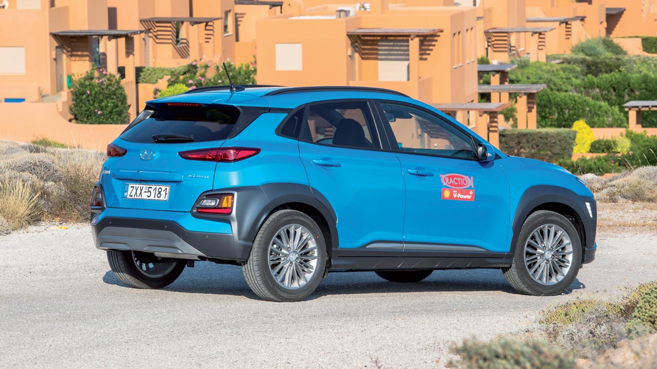 Το αυτοκίνητο της δοκιμής ήταν εξοπλισμένο με τον τρικύλινδρο τουρμπάτο 1.000άρι, απόδοσης 120 ίππων, συνδυασμένο με εξάρι μηχανικό κιβώτιο. Εύστροφος κινητήρας με σπιρτάδα σε ευρύ φάσμα στροφών, μετέφερε σβέλτα το αμάξωμα του Kona χωρίς κομπιάσματα και έστριβε υποδειγματικά στην παραλιακή λεωφόρο, στη διαδρομή από το Λαγονήσι μέχρι το Σούνιο. Στην απόδοσή του βοηθούσε σίγουρα και η κλιμάκωση του κιβωτίου ταχυτήτων. Έχουν κάνει σπουδαία δουλειά στο set up της ανάρτησης, η οποία είναι άνετη είτε είσαι μόνος σου είτε με επιβάτες, χωρίς όμως να αφήνει το αμάξωμα να παίρνει υπερβολικές κλίσεις. Αναμφίβολα η επιτυχημένη παρουσία της Hyundai στο Παγκόσμιο Πρωτάθλημα Ράλι με το i20 έχει προσφέρει χρήσιμες πληροφορίες και εμπειρίες με επιστέγασμα το εξαιρετικό σε όλα τα επίπεδα i20 N. Οι υπόλοιποι κινητήρες είναι απόδοσης 177 ίππων ο 1,6 και 136 ο νέος 1,6 Diesel. Επίσης, πέρα από το μηχανικό κιβώτιο, υπάρχει και επτατάχυτο DCT διπλού συμπλέκτη που, εκτός από τα πλεονεκτήματα που προσφέρει στις δύσκολες συνθήκες μετακίνησης μέσα στην πόλη, συμμετέχει στη μείωση της κατανάλωσης συγκριτικά με άλλα αυτόματα εξατάχυτα κιβώτια, αλλά και στην αύξηση της επιτάχυνσης κατά 10%.