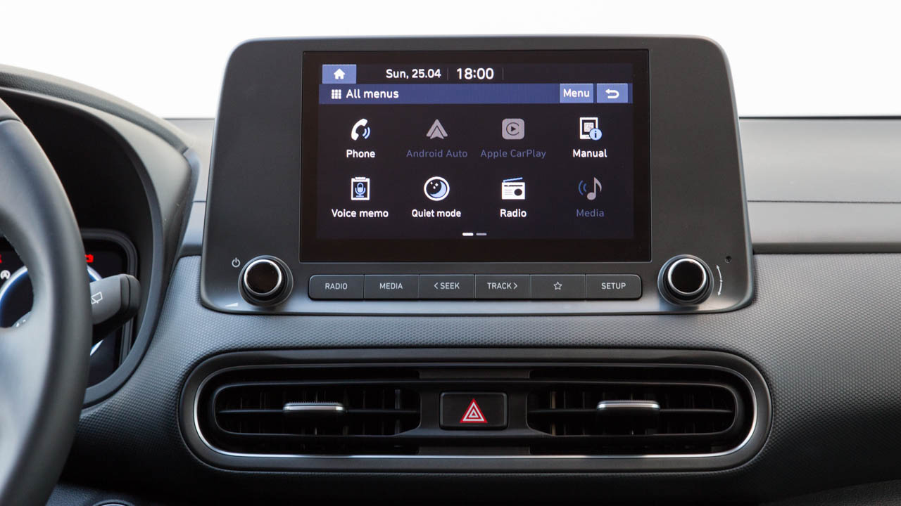 Στους τομείς της τεχνολογίας και της εργονομίας στο ανανεωμένο Kona βλέπουμε τώρα ρύθμιση ύψους και για τα δύο εμπρόσθια καθίσματα αλλά και ψηφιακό πίνακα πληροφοριών με διαγώνιο στις 10,25 ίντσες που είδαμε για πρώτη φορά στο i20. Η στάνταρ οθόνη αφής του αναβαθμισμένου συστήματος πολυμέσων φτάνει πλέον στις οχτώ ίντσες από επτά με το σύστημα πολυμέσων της Hyundai να υποστηρίζει ασύρματα Android Auto και Apple CarPlay αλλά και DAB radio. Στον προαιρετικό εξοπλισμό ανήκει η AVN οθόνη των 10,25 ιντσών του multimedia συστήματος, η οποία προσφέρει split screen λειτουργία και μέσω των cloud της Hyundai μπορεί να προσφέρει πλοήγηση “για τα τελευταία μέτρα” μεταφέροντας το στίγμα του GPS στο κινητή, όταν βγείτε από το αυτοκίνητο. Στο “μενού” περιλαμβάνονται μεταξύ άλλων και φωνητικές εντολές αλλά και πληροφορίες για διαθέσιμες θέσεις στάθμευσης στην περιοχή ενδιαφέροντος.