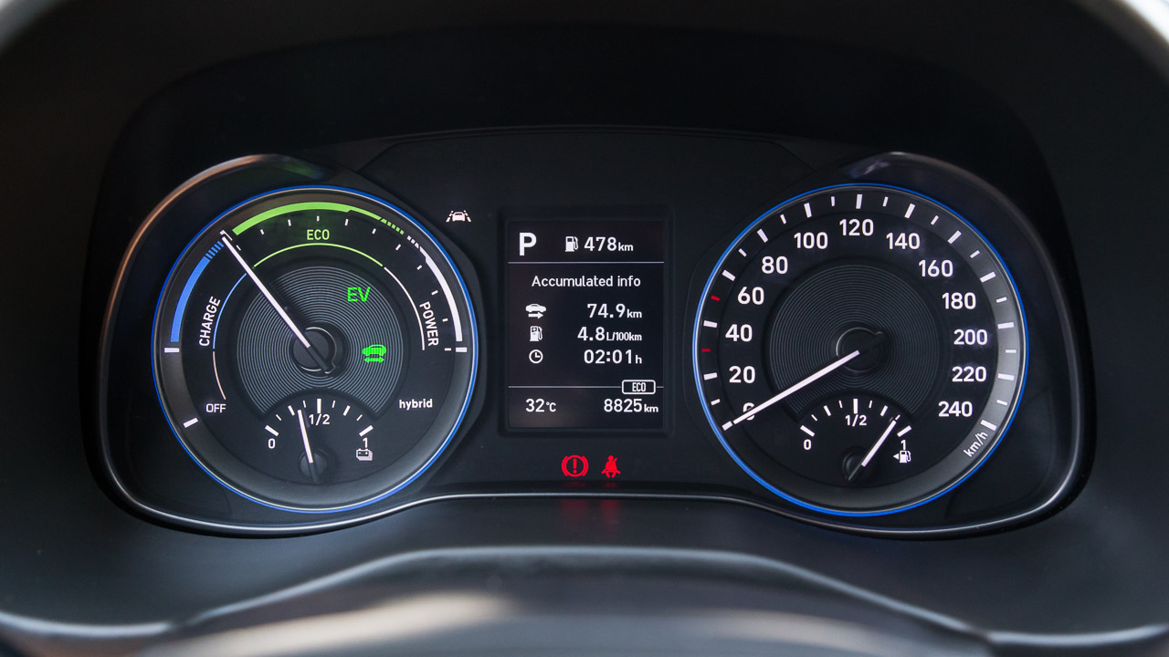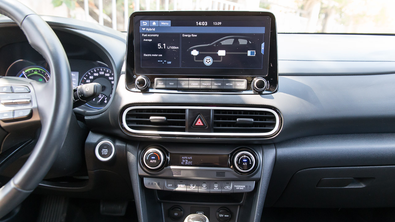 Το ηλεκτρικό μοτέρ και η μπαταρία δίνουν κυριολεκτικά ρέστα σε αυτό το περιβάλλον. Έναντι των συμβατικών κινητήρων με σύστημα Start&Stop αλλά και των ήπια υβριδικών, το Kona Hybrid μπορεί και παραμένει με το μοτέρ εσωτερικής καύσης σβηστό για χαρακτηριστικά μεγαλύτερο χρονικό διάστημα περιμένοντας στο μποτιλιάρισμα. Η λειτουργία του κλιματιστικού δεν “ζορίζει” ιδιαίτερα την μπαταρία που έχει σαφώς μεγαλύτερα αποθέματα έναντι των άλλων δύο περιπτώσεων και η οικονομία καυσίμου είναι άμεση και αντιληπτή.