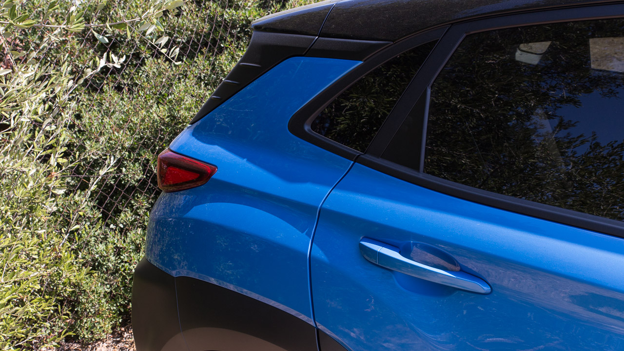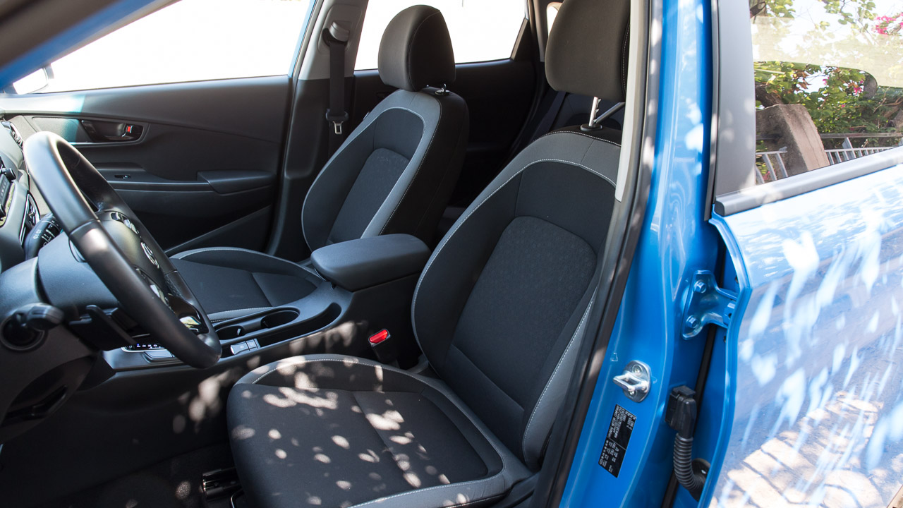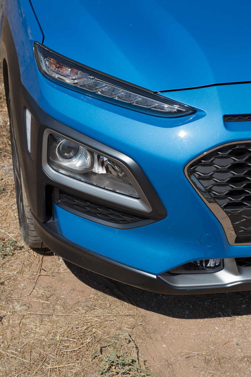 Οι συμπαγείς διαστάσεις και το ελκυστικό “πρόσωπο” είναι εκείνα που τραβούν το βλέμμα στο Hyundai Kona Hybrid. Βοηθάει βέβαια και η συγκεκριμένη απόχρωση του μπλε που προσθέτει πόντους και λογικά θα αποτελούσε και τη δική μου επιλογή αν ποτέ το έκανα δικό μου. Η εικόνα στο εσωτερικό είναι σύγχρονη με το Kona να ξεχωρίζει για τη σωστή διάταξη των χειριστηρίων και των κουμπιών του που απαιτούν πολύ μικρό χρόνο εξοικείωσης, τόσο από τον οδηγό όσο και από εκείνους που θα κάτσουν στο δεξί κάθισμα. Τα καθίσματα είναι με τη σειρά τους αναπαυτικά, προσφέρουν μέτρια πλευρική στήριξη και θα βολέψουν τη συντριπτική πλειοψηφία αυτών που θα φιλοξενήσουν τουλάχιστον με ύψος έως και 1,85 μ. Χώρος υπάρχει μπόλικος και στα πίσω καθίσματα όπου θα κάτσουν με άνεση δύο ακόμη ενήλικες μέσου ύψους έχοντας επαρκή χώρο για τα κεφάλια και τα γόνατα τους.
