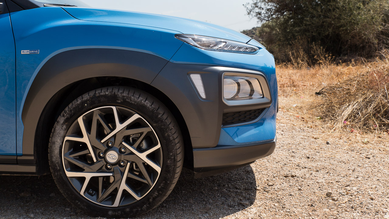To Kona Hybrid είναι ένα ήσυχο και άνετο αυτοκίνητο στο δρόμο ακόμη και στην κορυφαία έκδοση Distinctive της δοκιμής, η οποία έφερε 18ρηδες τροχούς και ελαστικά με 45άρι προφίλ. Τα περιθώρια πρόσφυσης είναι υψηλά και σε συνδυασμό με την πολύ καλή λειτουργία των ηλεκτρονικών συστημάτων θα κινηθείτε γρήγορα σε κάθε διαδρομή. Τα όρια στις σπορ ανησυχίες του οδηγού βάζουν το τιμόνι με την ελλιπή πληροφόρηση και η αίσθηση του μεσαίου πεντάλ που δεν είναι απόλυτα γραμμική. Όπως και να έχει το υβριδικό Kona δεν σχεδιάστηκε για να κινείται διασκεδαστικά αλλά με ταχύτητα και ασφάλεια και αυτό το καταφέρνει πολύ καλά. Ως εκπρόσωπος της κατηγορίας των SUVs “βλέπει” και χωματόδρομους και δεν θα αντιμετωπίζει πρόβλημα σε πατημένα κομμάτια. Οι ζάντες των 18 ιντσών με τα αντίστοιχα χαμηλού προφίλ ελαστικά θέλουν όμως προσοχή και οι στάνταρ τροχοί των 16 ιντσών είναι μια καλύτερη επιλογή που προσφέρει ακόμη περισσότερο στον τομέα της άνεσης εκτός αλλά και εντός δρόμου. Οι 16ρηδες τροχοί προσφέρουν και στην τσέπη αφού οι εκπομπές CO2 περιορίζονται στα 90 γρ./χλμ. σύμφωνα με το πρωτόκολλο μετρήσεων NEDC με αποτέλεσμα να μειώνεται περαιτέρω η κατανάλωση και να γλιτώνετε και τα τέλη κυκλοφορίας.