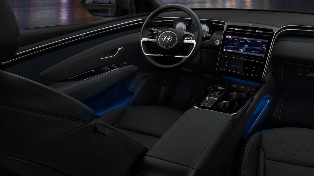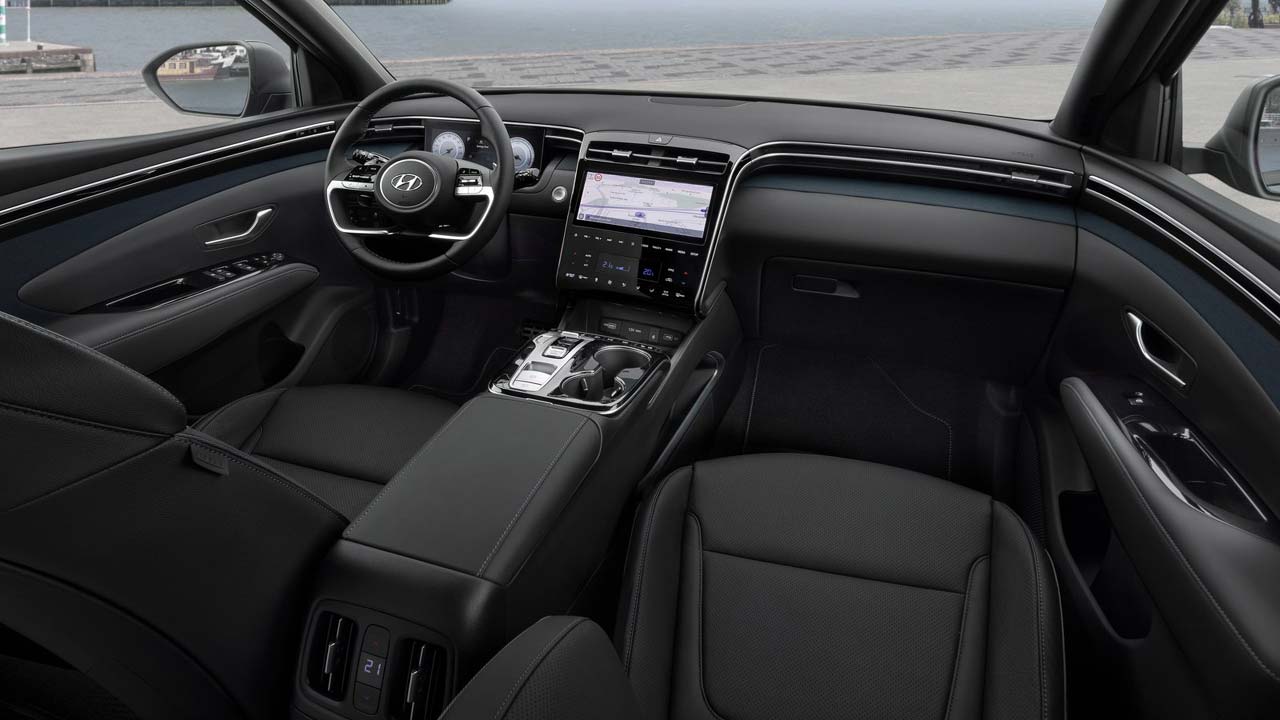 Οι θετικές εντυπώσεις συνεχίζονται και στο εσωτερικό του νέου Hyundai Tucson. Οι σχεδιαστές της κορεάτικες εταιρίας έδωσαν έμφαση στην ευρυχωρία όχι μόνο στα νούμερα αλλά και σαν αίσθηση που λαμβάνεται από τους επιβαίνοντες. Για αυτό το λόγο τοποθέτησαν ολόκληρο το ταμπλό πιο χαμηλά έναντι της υπάρχουσας γενιάς αφήνοντας παράλληλα την οθόνη πληροφοριών του οδηγού των 10,25 ιντσών χωρίς “αλεξήλιο”. Το πάνω μέρος του ταμπλό με τη μοντέρνα λιτή σχεδίαση είναι σχεδόν επίπεδο και αυτή η επιλογή συμβάλλει επίσης στην αίσθηση ευρυχωρίας που δημιουργείται, τουλάχιστον οπτικά, ενώ το υλικό είναι αφρώδες. Στη σχεδίαση του έχουν ενσωματωθεί πλήρως και οι πλαϊνοί αεραγωγοί που δεν γίνονται αντιληπτοί με την πρώτη ματιά. Την θέση του πίνακα οργάνων έχει πάρει μία ακόμη έγχρωμη οθόνη και εκεί έχω και την μόνη μου σχεδιαστική ένσταση, καθώς είναι σαν να προσπάθησαν να… στριμώξουν ένα τάμπλετ σε εκείνο το σημείο. Θα μπορούσε θεωρώ σχεδιαστικά να γίνει κάτι καλύτερο (λεπτομέρειες βέβαια). Πρέπει όμως να αναφέρω την εξαιρετική ιδέα των ανθρώπων της Hyundai να προβάλουν εικόνα από τις κάμερες στους καθρέφτες κάθε φορά που ανάβεις φλας. Ήταν κάτι που με βόλεψε πολύ και ομολογώ με έκανε να μην κοιτάω τους καθρέφτες, καθώς βρήκα πιο εύκολο και ταχύτερο το να κοιτάω την εικόνα από την κάμερα στην οθόνη. Τα υλικά είναι πολύ καλά, ενώ το ίδιο ισχύει για το φινίρισμα και την συναρμογή τους. Ένστασή μου και εδώ οι μεγάλες μαύρες γυαλιστερές επιφάνειες στην κονσόλα κυρίως, που δυστυχώς βρωμίζουν εύκολα και χάνουν την αίγλη που έχουν όταν είναι καθαρές.