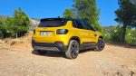 Δεδομένου ότι πρόκειται για ένα εντελώς νέο μοντέλο, δεν γίνεται να μην ξεκινήσουμε από την εξωτερική εμφάνιση, η οποία μάλιστα διαπιστώσαμε πως ήταν ελκυστική βάσει των αντιδράσεων περαστικών στη διάρκεια της δοκιμής. Tο πρώτο ηλεκτρικό μοντέλο της εταιρείας διακρίνεται για τα λεπτά φωτιστικά σώματα εμπρός, ανάμεσα στα οποία τοποθετείται η γνωστή μάσκα που αποτελεί εδώ και χρόνια σήμα κατατεθέν της εταιρείας. Δύο έντονα νεύρα διατρέχουν το καπό, ενώ δεν απουσιάζει και το “e” που μαρτυρά την εξηλεκτρισμένη φύση του μοντέλου. Στο πίσω τμήμα, συναντάμε επίσης μικρής επιφάνειας LED σώματα και το λογότυπο της Jeep με μπλε χρώμα. Αξιοσημείωτο είναι να αναφέρουμε ότι το κάτω τμήμα του αμαξώματος φέρει πλαστικές επενδύσεις για μέγιστη προστασία, ενώ η αυξημένη απόσταση από το έδαφος δημιουργεί καλές “off-road” τιμές (προσέγγισης, διαφυγής, ράμπας) στις οποίες θα αναφερθούμε εκτενώς στη συνέχεια. Όσο για το μήκος του αμαξώματος, αγγίζει τα μόλις 4,08 μέτρα, 16 εκατοστά πιο μικρό από το Renegade. Το δε πλάτος φτάνει τα 1.776 χλστ. και το ύψος 1.528.