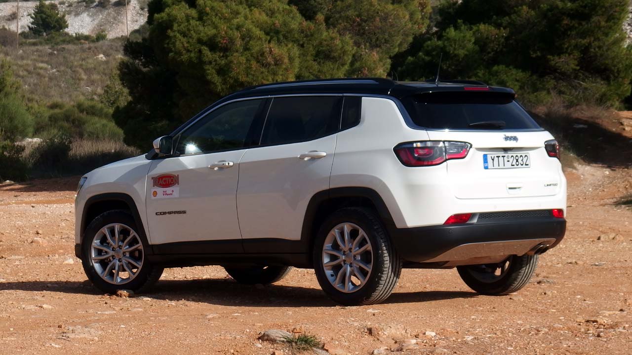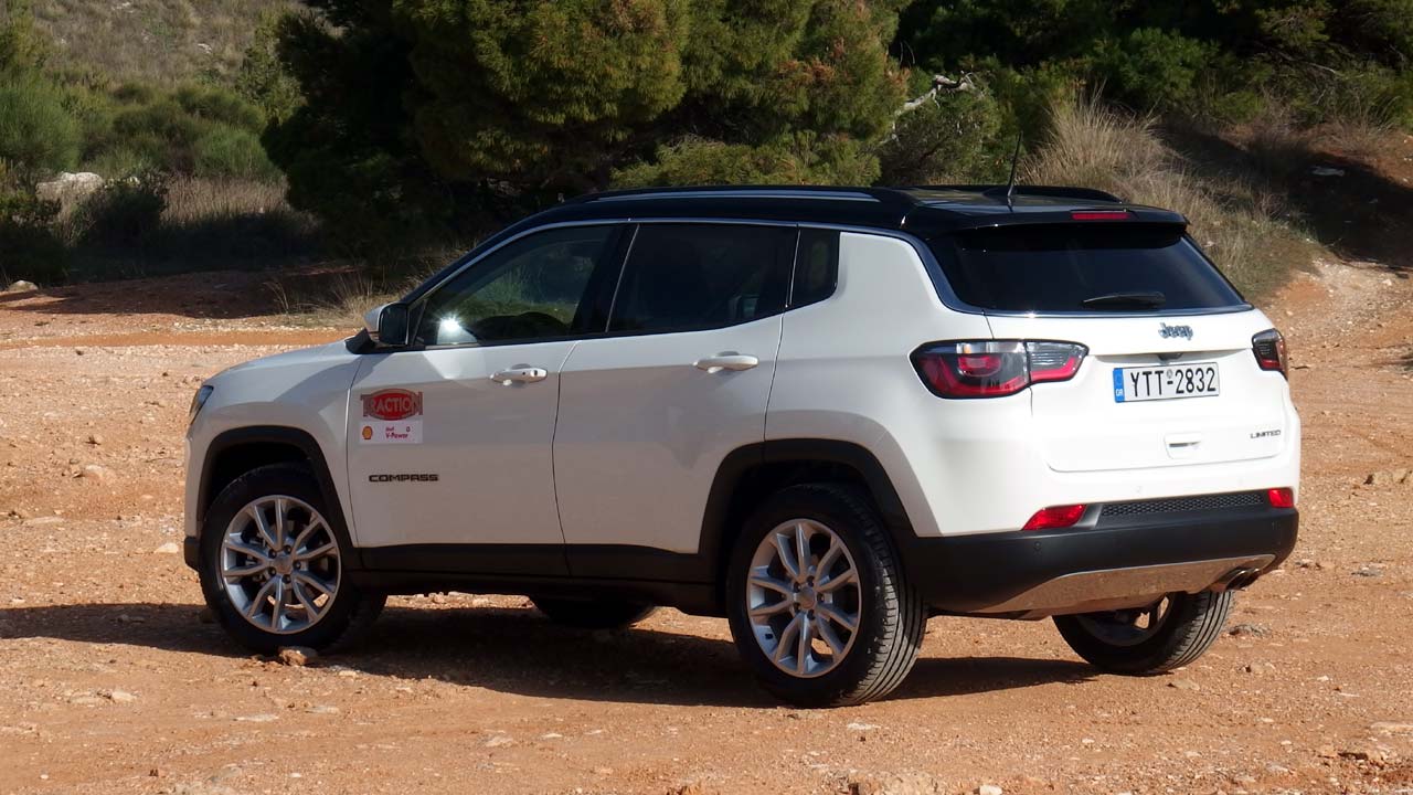 Αν και Jeep σημαίνει τετρακίνηση και εκτός δρόμου διαδρομές, εδώ έχουμε να κάνουμε με δικίνητο μοντέλο. Παρόλα αυτά το Compass αν ξέρεις να το… πας θα σε πάει αρκετά μακριά εκτός δρόμου (αρκεί να μην συναντήσει λάσπη ή ολισθηρό τερέν) και για αυτό ευθύνεται η απόσταση από το έδαφος που πλησιάζει τα 200 χλστ. (198 χλστ. για την ακρίβεια). Δεν θα επεκταθούμε όμως σε αυτό γιατί αντιλαμβανόμαστε πως όποιος ενδιαφέρεται για την δικίνητη έκδοση του Compass προφανώς δεν έχει κατά νου τις εκτός δρόμου ικανότητες. Έτσι, θα πούμε πως το δικίνητο μοντέλο της Jeep είναι ευχάριστη έκπληξη όταν κινείται στην άσφαλτο. Άνετο και ήσυχο, δεν κουράζει σε μακρινές αποστάσεις, ενώ η ανάρτηση (για πρώτη φορά χρησιμοποιούνται αμορτισέρ FSD (Frequency Selective Damping) και το τιμόνι διακρίνονται για τις άμεσες αντιδράσεις τους. Τα φρένα είναι ισχυρά και το κιβώτιο γρήγορο και ομαλό κατά τις αλλαγές, ενώ διαθέτει και λειτουργία Sport, η οποία βελτιώνει τα δυναμικά χαρακτηριστικά του αυτοκινήτου (τιμόνι, απόκριση κινητήρα, συμπεριφορά κιβωτίου).