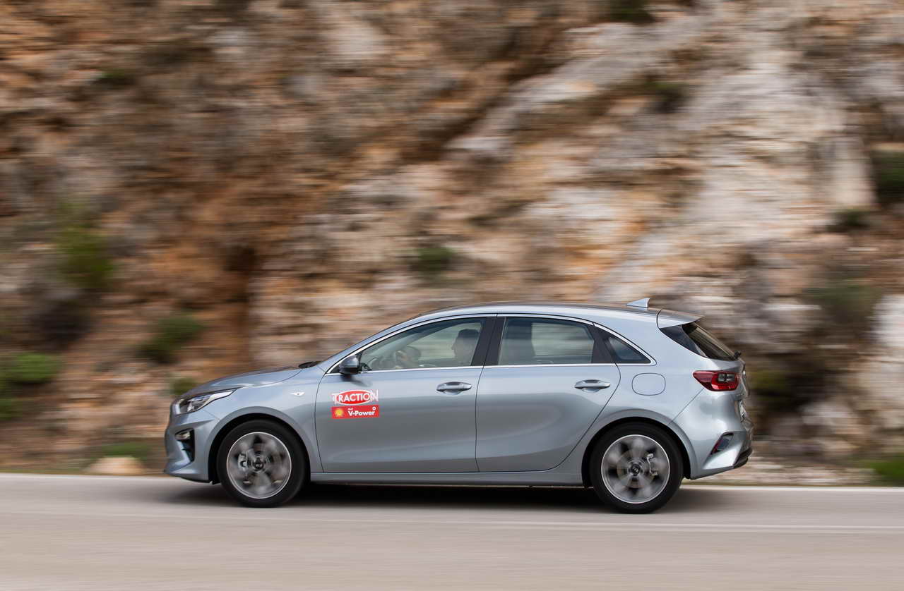 Μιλήσαμε για συστήματα, προδιαγραφές και στόχους, όμως δεν έχουμε αναφερθεί ακόμη στο “δια ταύτα”. Το Kia Ceed 1.0 T-GDi, αποδίδει 120 ίππους στις 6000 στροφές. Η ροπή των 17,5 κιλών, εμφανίζεται μεταξύ 1500-4000 στροφών, διατηρώντας ζωντανό τον κινητήρα σε μεγάλο εύρος. Έχοντας επιτάχυνση 0-100 σε 11,1” και τελική ταχύτητα 190 χλμ./ώρα, το μικρότερο τούρμπο Ceed είναι σβέλτο, πάντα στο πλαίσιο του σκοπού για τον οποίο έχει δημιουργηθεί. Το αναφέρουμε αυτό, καθώς διαθέτει σαφώς πιο “οικογενειακό” χαρακτήρα, οπότε οι ρυθμίσεις των ανθρώπων της Kia προσανατολίζονται εκεί, και όχι στις απόλυτες επιδόσεις. Σε αυτό το πλαίσιο κινείται και η απόδοση του Ceed. Σύμφωνα με τις εργοστασιακές μετρήσεις, η κατανάλωση κυμαίνεται μεταξύ 5,3-5,5 λίτρων/100 χλμ. και η εκπομπή ρύπων μεταξύ 122-126 γραμμαρίων CO2/χλμ., ανάλογα με την έκδοση του αυτοκινήτου.