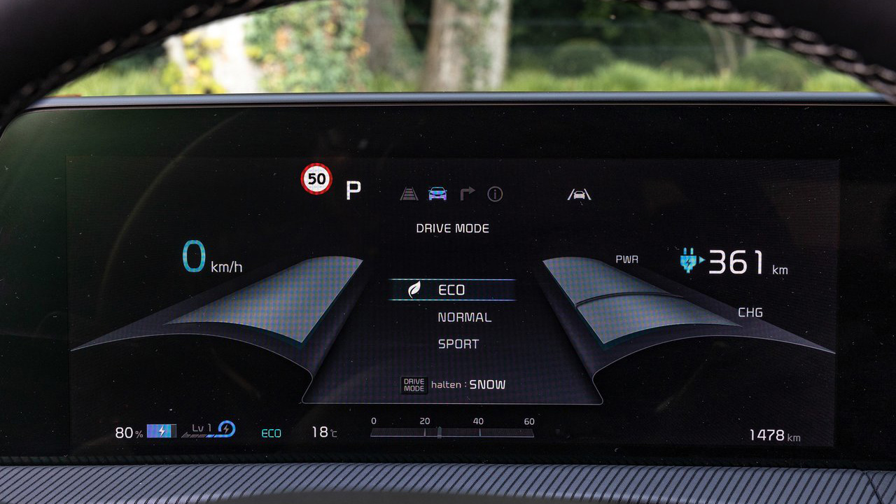 Το Kia EV6 από τα πρώτα κιόλας χιλιόμετρα εντυπωσιάζει με την κορυφαία κύλιση και την ησυχία στην καμπίνα. Η ανάρτηση λειτουργεί υποδειγματικά “φιλτράροντας” τις ανωμαλίες του αστικού περιβάλλοντος (παρά τις ζάντες 20 ιντσών), ενώ ταυτόχρονα δίνει μία στιβαρή αίσθηση στις γρήγορες καμπές. Τα φρένα “βγαίνουν” ασπροπρόσωπα στο δύσκολο έργο της επιβράδυνσης λόγω του αυξημένου βάρους, ενώ το πεντάλ είναι ιδιαίτερα γραμμικό. Σίγουρα θα θέλαμε ένα σύστημα διεύθυνσης με πιο άμεση πληροφορήση, μιας και ακόμα και στο “sport” πρόγραμμα οδήγησης δεν αποκτά την επιθυμητή αμεσότητα. Όσο για τη λειτουργία των δύο κινητήρων, στα προγράμματα “eco” και “normal” δίνεται έμφαση στην οικονομία και λειτουργεί κατά κύριο λόγο αυτός του πίσω άξονα. Μόλις ενεργοποιηθεί, όμως το “sport” πρόγραμμα, τα 605 Nm ροπής “συστήνονται” στον οδηγό ακαριαία και η επιτάχυνση μέχρι τα 70-80 χλμ./ώρα καθιστά σώμα και κάθισμα ως ένα και το αυτό. Μπορεί σε μεγαλύτερες ταχύτητες να μην αυξάνεται τόσο απότομα η ταχύτητα και το “τράβηγμα” που αισθάνεσαι να μην είναι τόσο έντονο, αλλά σε ρεπρίζ προσπέρασης επαρχιακού δρόμου (70-90 χλμ./ώρα) το Kia EV6 των 325 ίππων είναι άκρως επιθετικό. Η δε ανάκτηση ρυθμίζεται από τα paddles που συναντάμε πίσω από το τιμόνι, ενώ δεν απουσιάζει και η αυτόματη ρύθμιση που μεταβάλλει την επιβράδυνση, ανάλογα με την απόσταση από το προπορευόμενο όχημα, το όριο ταχύτητας στην περιοχή κι ούτω καθ’ εξής.