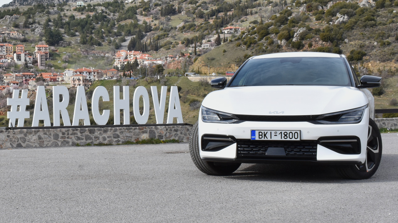 Περνάμε στην “καρδιά” του αμιγώς ηλεκτρικού Kia EV6 ή καλύτερα στις “καρδιές” μιας και στην τετρακίνητη έκδοση της δοκιμής έχουμε να κάνουμε με έναν ηλεκτροκινητήρα σε κάθε άξονα. Η συνδυαστική ισχύς αγγίζει τους 325 ίππους, ενώ η μέγιστη τιμή της ροπής είναι ακαριαία και αγγίζει τα 605 Nm ροπής. Ενδεικτικά αναφέρουμε πως τόση ροπή έχει και η Lamborghini Huracan Evo (600 Nm στις 6.500 σ.α.λ.). Κάπως έτσι, το αμάξωμα των 2.090 κιλών “εκτοξεύεται” στα 0-100 χλμ./ώρα σε μόλις 5,2 δλ. και η τελική ταχύτητα περιορίζεται στα 188 χλμ./ώρα. Την τροφοδοσία αναλαμβάνει μία μπαταρία ιόντων-λιθίου χωρητικότητας 77,4 kWh (στην έκδοση Long Range), με την αυτονομία που ανακοινώνεται σύμφωνα με τα πρότυπα WLPT να φτάνει τα 484 χλμ. Όσο για την κατανάλωση, με μεικτές συνθήκες οδήγησης φτάνει τα 18 kWh/100 χλμ. σύμφωνα πάλι με τα πρότυπα WLTP. Στη διάρκεια της δοκιμής διαπιστώσαμε ότι είναι εφικτή μία μέση τιμή στις 20 kWh/100 χλμ., με αποτέλεσμα τα 400+ χλμ. να είναι μία αρκετά ρεαλιστική αυτονομία. Εννοείται ότι σε αστικό περιβάλλον, με ενεργοποιημένο το i-pedal (μέγιστη ανάκτηση ενέργειας), η μέση τιμή της κατανάλωσης μειώνεται δραματικά. Στη διάρκεια της δοκιμής, σε τέτοιες συνθήκες είδαμε και 16-17 kWh/100 χλμ. που μεταφράζονται σε 500+ χλμ. αυτονομίας.