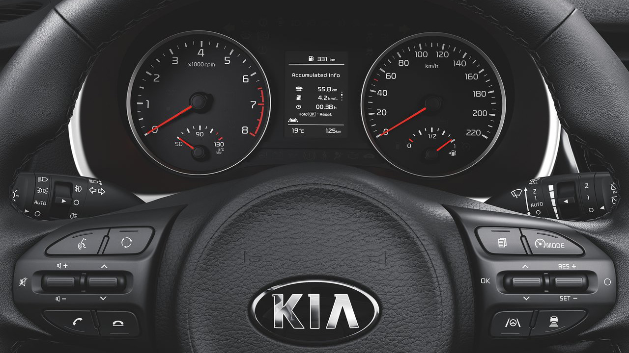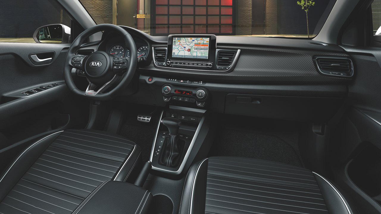 H ανανέωση της Kia για το Rio προχωρά και στο εσωτερικό με την εταιρία να κάνει λόγο για ποιοτική αναβάθμιση αλλά και για περισσότερες χρωματικές επιλογές στην καμπίνα. Το περιβάλλον είναι σύγχρονο και ποιοτικό, η μόνωση της καμπίνας είναι ικανοποιητική, ενώ αξίζει να αναφέρουμε ότι οι πλαστικές επενδύσεις είναι σκληρές στο σύνολό τους. Στην περίπτωση της έκδοση GT-Line της δοκιμής, το Kia Rio διακρίνεται για τον σπορ χαρακτήρα του. Το πολυλειτουργικό τιμόνι για παράδειγμα είναι επίπεδο στο κάτω μέρος του και φέρει το σχετικό λογότυπο, τα πεντάλ είναι αλουμινένια, ενώ μεγάλο μέρος της επιφάνειας του ταμπλό φέρει μία εντυπωσιακή επένδυση τύπου carbon. Στο κέντρο του ταμπλό συναντάμε μία ψηφιακή οθόνη αφής μεγέθους 8 ιντσών, η οποία είναι ιδιαίτερα εύχρηστη και παρέχει όλες τις απαραίτητες υπηρεσίες, από κάμερα οπισθοπορείας, μέχρι συστήματα συνδεσιμότητας Apple CarPlay και Android Auto. Πίσω από το τιμόνι, ο πίνακας οργάνων είναι αναλογικός και ευανάγνωστος, ενώ ένα μέρος του καλύπτεται από οθόνη που έχει διαγώνιο 4,2 ίντσες και παρέχει όλες τις απαραίτητες ενδείξεις, από την μέση κατανάλωση μέχρι τη λειτουργία του υβριδικού συστήματος. Ως προς τους διαθέσιμους χώρους, το Kia Rio θα φιλοξενήσει με κάθε άνεση τέσσερις ενήλικες επιβάτες, ο χώρος για το κεφάλι των πίσω επιβατών είναι επαρκής και bonus πρακτικότητας είναι οι θήκες για μικροαντικείμενα. Οι “τσέπες” των εμπρός θυρών είναι μεγάλες και φέρουν έξτρα ποτηροθήκη, ενώ ο χώρος για τις αποσκευές διαμορφώνεται στα 325 λτ. με κιτ επισκευής (300 λτ. με ρεζέρβα).
