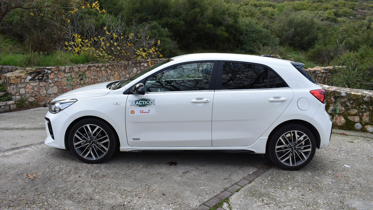 Κάτω από το καπό του Kia Rio της δοκιμής συναντάμε ένα νέο, αλουμινένιο μοτέρ βενζίνης με τρεις κυλίνδρους. Ονομάζεται T-GDi, είναι υπερτροφοδοτούμενος και φέρει σύστημα άμεσου ψεκασμού, ενώ η χωρητικότητά του αγγίζει τα 998 κ.εκ. Σε συνδυασμό με το ήπια υβριδικό σύστημα 48V, η ισχύς αγγίζει τους 120 ίππους στις 6.000 σ.α.λ. και η μέγιστη τιμή των 200 Nm ροπής κάνει την εμφάνισή της στο εύρος 2.000-3.500 σ.α.λ. Ασφαλώς για την τροφοδοσία του μικρού ηλεκτροκινητήρα (MHSG) υπάρχει μία μικρή μπαταρία λιθίου που φορτίζει κατά την επιβράδυνση. Κάπως έτσι, ο κινητήρας του Kia Rio είναι ικανός να σβήνει όταν το φορτίο του είναι μηδενικό συμβάλλοντας στην βελτίωση της κατανάλωσης. Και μιας και αναφερθήκαμε στις ανάγκες του χιλιάρη κινητήρα για καύσιμο, αξίζει να αναφέρουμε ότι η εταιρεία ανακοινώνει 5,1-5,5 λτ./100 χλμ. σε μικτό κύκλο (WLTP), ενώ στη διάρκεια της δοκιμής σε πραγματικές συνθήκες διαπιστώσαμε ότι η μέση κατανάλωση διαμορφώνεται στα 7,2 λτ./100 χλμ. Όσον αφορά στις επιδόσεις, στην προκειμένη περίπτωση που το αυτοκίνητο της δοκιμής βάρους 1.253 κιλών εξοπλίζεται με το αυτόματο 7DCT, τα 0-100 χλμ./ώρα έρχονται σε 10,3 δλ. και η τελική ταχύτητα φτάνει τα 190 χλμ./ώρα.