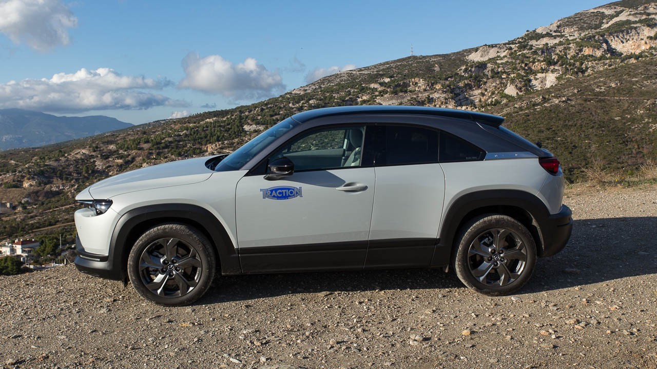 To MX-30 είναι άνετο και στιλάτο αλλά δεν θα πει όχι ούτε σε πιο δυναμική οδήγηση. Η πρόσφυση βρίσκεται σε ψηλά επίπεδα και το άμεσο τιμόνι προσφέρει μπόλικη πληροφορία στα χέρια του οδηγού κάτι που κάνει και το πεντάλ του φρένου, του ισχυρού και αποτελεσματικού συστήματος πέδησης. Τα όρια έρχονται με προοδευτικό τρόπο, οι κλίσεις στις στροφές είναι περιορισμένες και η γρήγορη αλλά και διασκεδαστική κάλυψη αποστάσεων χωρίς να χρησιμοποιείτε αυτοκινητόδρομο εγγυημένη. Τέλος και παρά τα μόλις 130 χλστ. που ανακοινώνει η Mazda για την απόσταση του MX-30 από το έδαφος, το ηλεκτρικό ιαπωνικό crossover νιώθει άνετα στο χωματόδρομο ακόμη και αν ο τελευταίος δεν βρίσκεται και στην καλύτερη δυνατή κατάσταση. Σίγουρα δεν είναι φτιαγμένο για τα δύσκολα, αλλά θα εξυπηρετήσει χωρίς προβλήματα στη συντριπτική πλειοψηφία των περιστάσεων που ο μέσος οδηγός θα εγκαταλείψει την άσφαλτο.