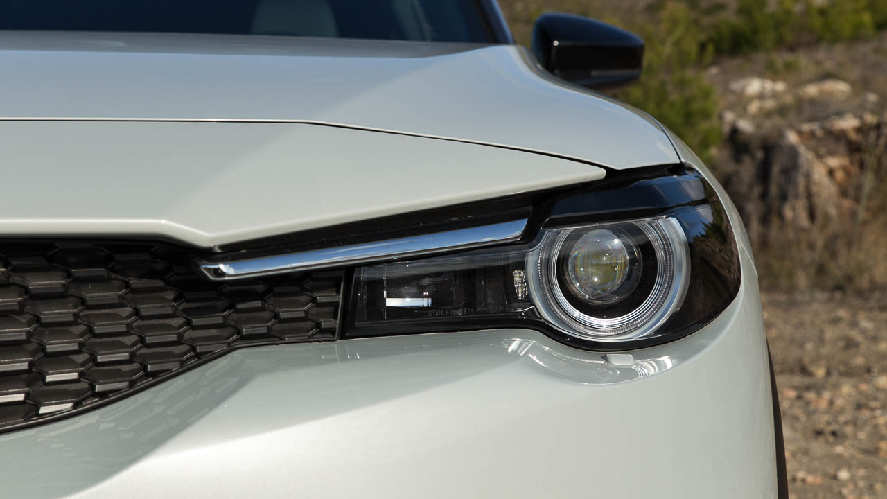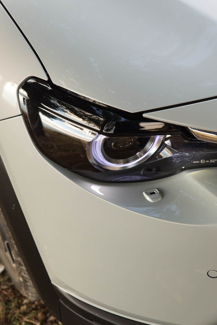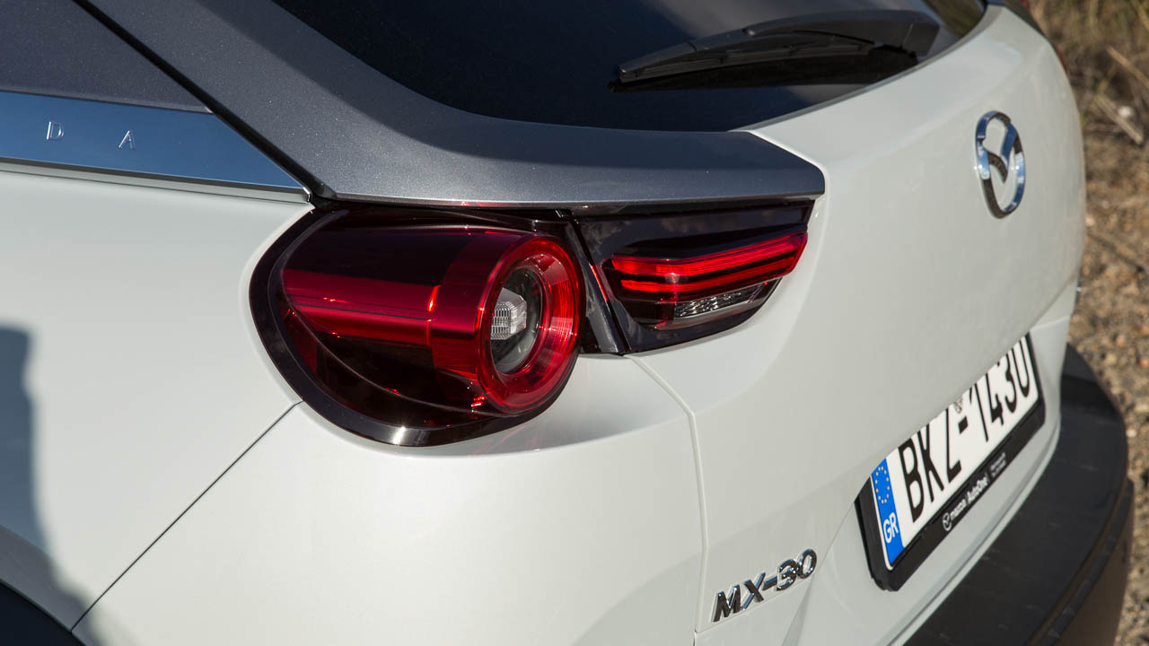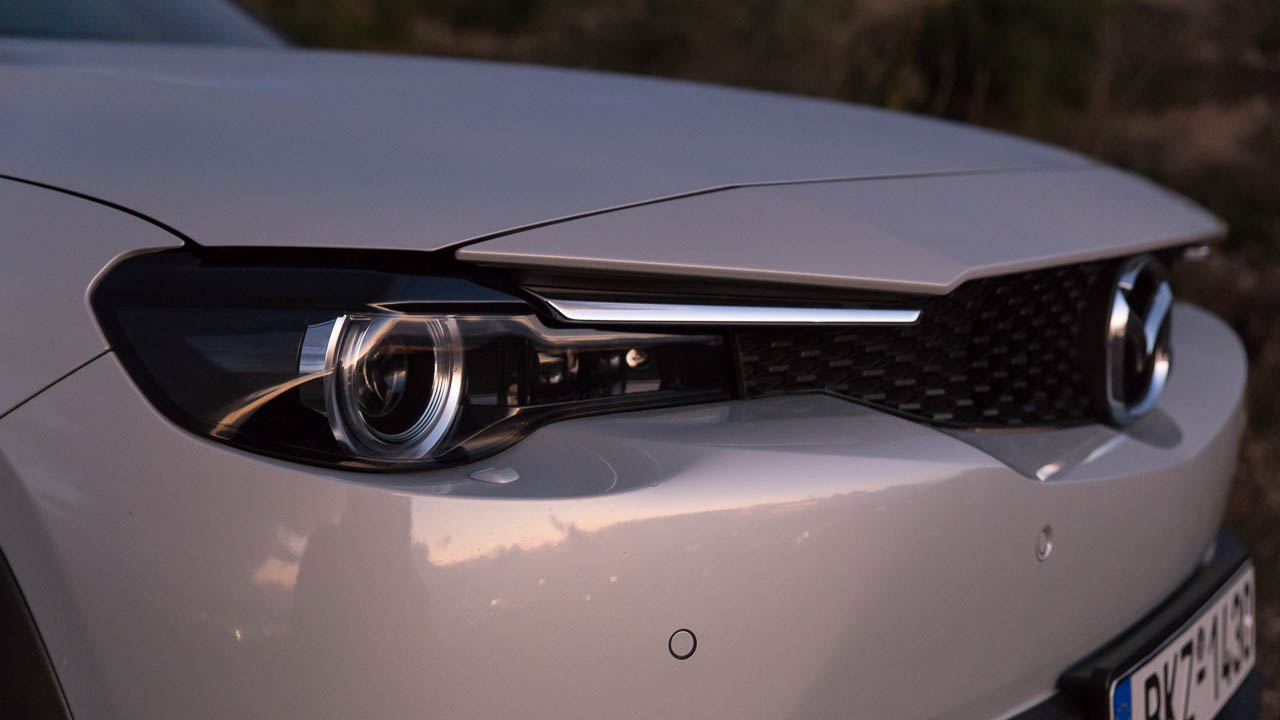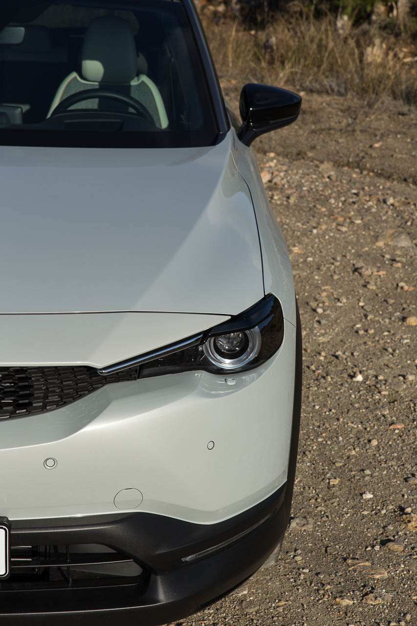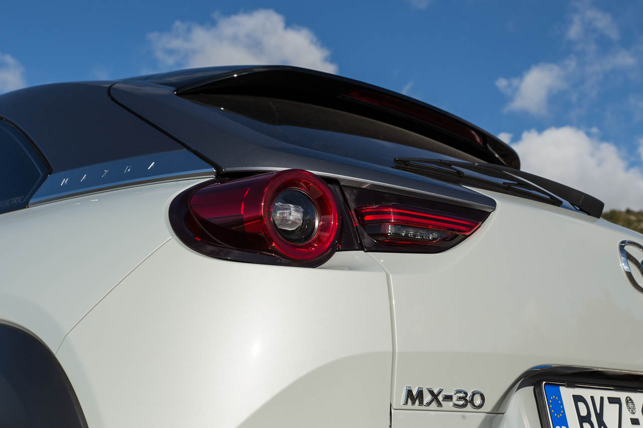 Η έμπνευση για τις “suicide” πόρτες έρχεται από το αείμνηστο RX-8 και κάθε φορά που θα τις ανοίγετε να είστε σίγουροι ότι θα αποτελείτε την απόλυτη ατραξιόν για τους παρευρισκόμενους, σε ένα “πακέτο” που συνδυάζει το στιλ με την πρακτικότητα. Σε γενικές γραμμές η εμφάνιση του MX-30 αποπνέει στιβαρότητα, με τα 3D σχεδίασης φωτιστικά σώματα να τονίζουν τις απαλές γραμμές του πίσω μέρους, ενώ το εμπρός μέρος συνδυάζει τον δυναμισμό με τη διακριτικότητα σε σωστές δόσεις.