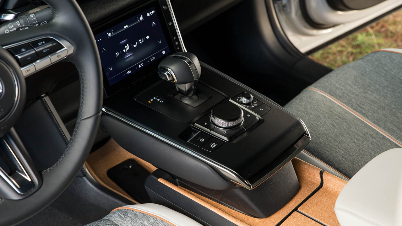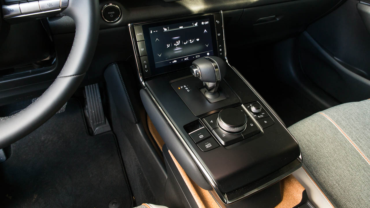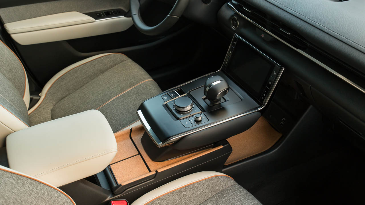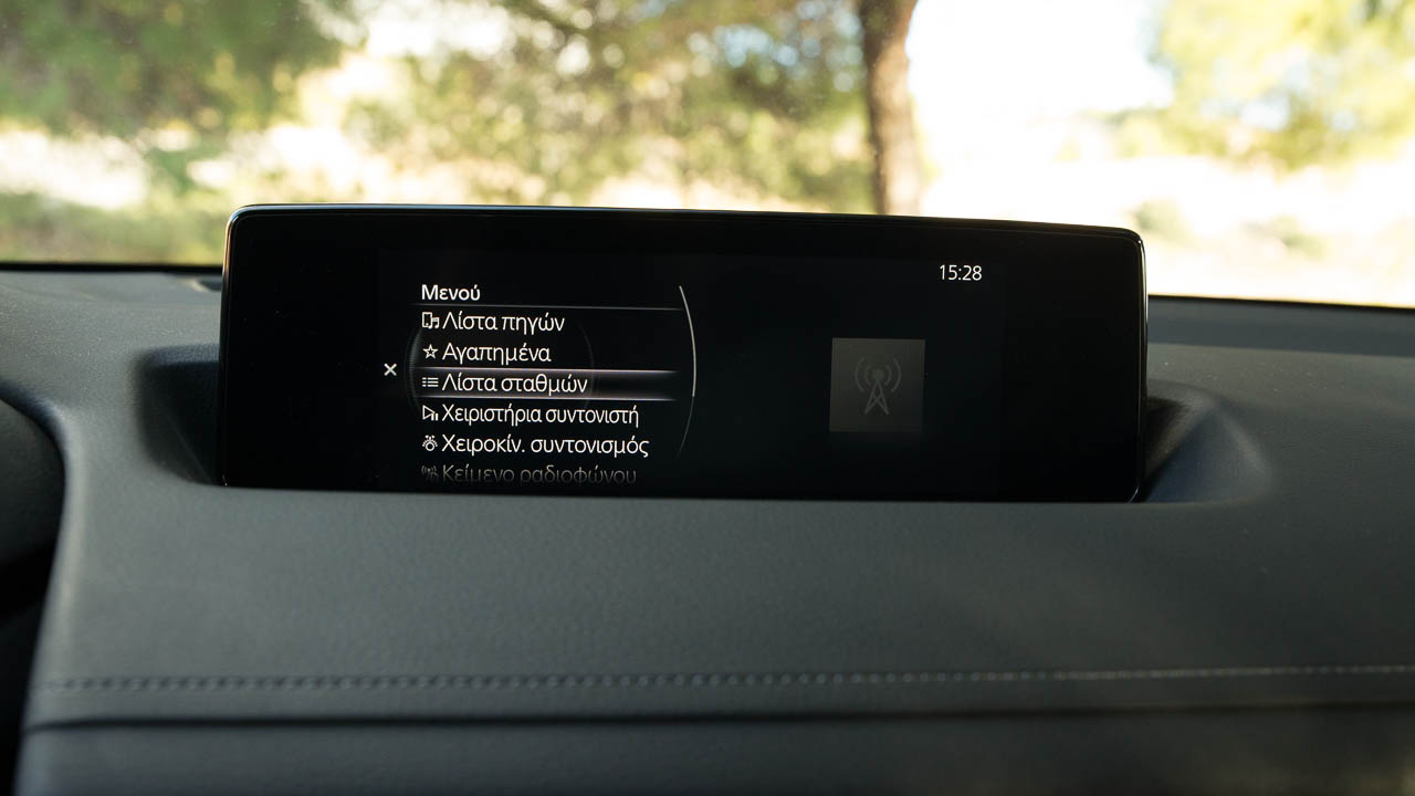 Στη δημιουργία θετικών εντυπώσεων βοηθά και η επένδυση από φελλό που προέρχεται από δέντρα που δεν έχουν κοπεί, μια αναφορά και στην ίδρυση της Mazda που ξεκίνησε σαν εταιρία παραγωγής φελλών. Στην κονσόλα θα βρείτε μπόλικους χώρους για τις έξυπνες συσκευές σας αλλά και θύρες για να τις φορτίσετε, ενώ ικανοποιητικός είναι και ο χώρος που προσφέρει ο “τεμπέλης” με το ενσωματωμένο υποβραχιόνιο να γλιστρά πάνω του και να προσφέρει διαφορετικές διαμορφώσεις. Το μοντέρνο και σοβαρό στην όψη ταμπλό είναι κατασκευασμένο από ποιοτικά υλικά, όπως και η υπόλοιπη καμπίνα και τα επίπεδα εργονομίας βρίσκονται ψηλά ακολουθώντας την ιαπωνική λογική. Ψηλά βρίσκεται και η ποιότητα κατασκευής αλλά και η συναρμογή που δεν αφήνει χώρο για παράπονα.