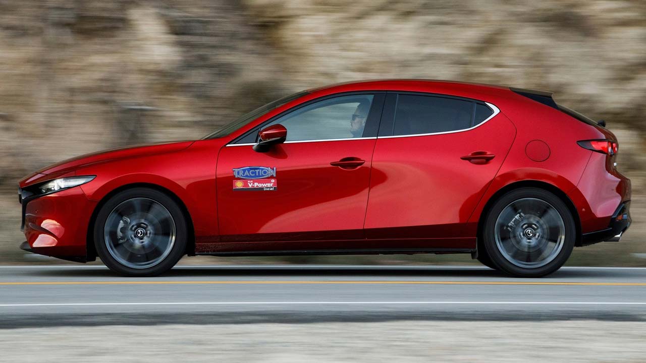 Από τα πρώτα χιλιόμετρα πίσω από το τιμόνι του νέου Mazda3 αντιλαμβάνεσαι πως έχεις να κάνεις με ένα αυτοκίνητο που δίνει έμφαση στην ποιοτική και στιβαρή κύλιση. Ξεπερνά αρχοντικά τις ανωμαλίες του οδοστρώματος, χωρίς να είναι “πλαδαρό”, ενώ η ευελιξία του δεν είναι πρόβλημα. Βγαίνοντας στον αυτοκινητόδρομο σε εκπλήσσει ευχάριστα με την ησυχία κατά το ταξίδι και την στιβαρότητα του πλαισίου. Στο περιφερειακό δίκτυο όμως και σε διαδρομή με απανωτές καμπές δείχνει το ταλέντο των μηχανικών της μάρκας. Κοφτερό και με άμεσες αντιδράσεις, πρόθυμο να ακολουθήσει ακόμη και τις πιο… βίαιες εντολές του οδηγού και μάλιστα χωρίς να δυσανασχετήσει χάρη στο άμεσο τιμόνι και την ανάρτηση που δεν επιτρέπει κλίσεις στο αμάξωμα. Τα φρένα είναι ισχυρά και ο επιλογέας από το 6άρι κιβώτιο ταχυτήτων έχει καλή αίσθηση κατά το κούμπωμα και δεν σκαλώνει ακόμη και σε ακαριαίες αλλαγές. Σε όλη αυτή την θετική εμπειρία πίσω από το τιμόνι του νέου Mazda3 συμβάλει θετικά και ο πρόθυμος κινητήρας. Συγκεκριμένα, κάτω από το καπό του το μοντέλο έχει τον turbo diesel 1.800άρη SkyActiv-D 116 ίππων στις 4.000 σ.α.λ. και 270 Nm ροπής από τις 1.600 έως και τις 2.600 σ.α.λ. Χαρακτηριστικά που εξασφαλίζουν στο νέο Mazda3 0-100 χλμ./ώρα σε 10,3 δλ. και τελική ταχύτητα 194 χλμ./ώρα. Την ίδια στιγμή η μέση κατανάλωση πετρελαίου είναι στα 5,1 λίτρα/100 χλμ. (με τις ζάντες αλουμινίου 18 ιντσών) και οι εκπομπές ρύπων CO2 είναι στα 131 γρ./χλμ.
