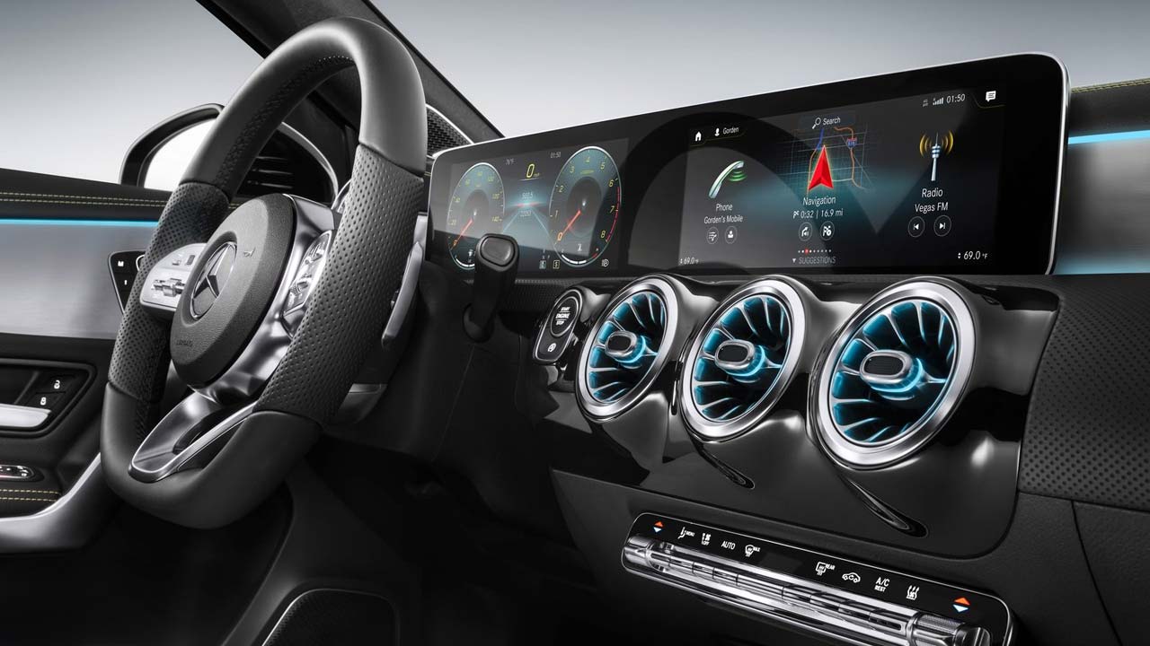 Όπως περιμένει κανείς από ένα υβριδικό μοντέλο που μπαίνει στην πρίζα, η τεχνολογία είναι πανταχού παρούσα. Και αυτό φυσικά ισχύει και για το εσωτερικό του αυτοκινήτου. Σε αυτό υπάρχουν γενναίες δόσεις πολυτέλειας, όπως γυαλιστερά πλαστικά και ενθέσεις χρωμίου στο ταμπλό. Μόλις όμως το μάτι ξεπεράσει τον αρχικό εντυπωσιασμό από τις γυαλιστερές επιφάνειες, τότε πέφτει επάνω στις ψηφιακές οθόνες και στα χειριστήρια του τιμονιού (κάποια είναι αφής, όπως στην S-Class). Η έκπληξη μόνο ευχάριστη μπορεί να είναι όταν συνειδητοποιείς πως η A 250 e είναι εξοπλισμένη με το προηγμένο σύστημα Command Infotainment με δύο ψηφιακές οθόνες. Η μία, πίσω από το τιμόνι, είναι χωρίς αφή (καθώς έχει πάρει τη θέση του πίνακα οργάνων), ενώ η δεύτερη στο κέντρο του ταμπλό είναι αφής. Και οι δύο είναι εξαιρετικές σε γραφικά και ευκρίνεια και ευανάγνωστες ανεξαρτήτως συνθηκών φωτισμού. Φυσικά η Mercedes A 250 e εξοπλίζεται και με το πρωτοποριακό σύστημα τηλεματικής MBUX με τεχνητή νοημοσύνη, καθώς οι φωνητικές εντολές είναι άλλου επιπέδου, αναγνωρίζοντας όχι απλά τη φυσική γλώσσα, αλλά και την διαφορετική προφορά της ίδιας γλώσσας (Hey Mercedes). Φυσικά διαθέτει και Dynamic Select. Αυτό επιτρέπει στον οδηγό να επιλέξει το προφίλ οδήγησης που επιθυμεί (Sport, Comfort και Individual). Αφήνοντας την τεχνολογία κατά μέρους, σε πολύ καλό επίπεδο βρίσκεται και η ευρυχωρία της καμπίνας, η οποία δεν έχει αλλάξει παρά την ύπαρξη της υβριδικής τεχνολογίας, με αρκετούς χώρους για μικροαντικείμενα και άνετα καθίσματα εμπρός. Ο χώρος αποσκευών είναι στα 310 λίτρα (μειωμένος κατά 60 λίτρα λόγω μπαταριών).