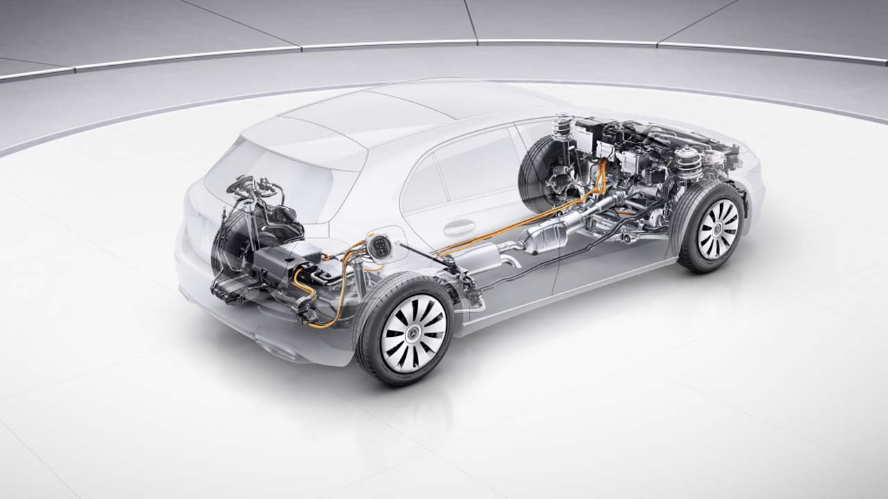 Κάτω από το όμορφο αμάξωμά της, η Mercedes A 250 e έχει έναν ηλεκτροκινητήρα 102 ίππων και έναν 4κύλινδρο βενζινοκινητήρα 1,33 λτ. που αποδίδει 160 ίππους. Συνδυαστικά το κινητήριο σύνολο αποδίδει 218 άλογα και 450 Nm ροπής. Τιμές που χαρίζουν 0-100 χλμ./ώρα σε 6,6 δλ. και τελική ταχύτητα 235 χλμ./ώρα. Και όλα αυτά με μέση πραγματική κατανάλωση στα 5,7 λίτρα/100 χλμ. (επίσημη τιμή στα 1,5 λίτρα/100 χλμ.) και εκπομπές CO2 στα 33-34 γρ./χλμ. Στην πράξη η Mercedes υπόσχεται αυτονομία έως και 70 χλμ. τιμή που είναι εφικτή, στο ECO, με προσεκτική οδήγηση και την ανάκτηση ενέργειας στο πιο δυνατό πρόγραμμα (επιλέγεις από τα χειριστήρια στο τιμόνι την ένταση ανάκτησης ενέργειας). Αν πάντως η μπαταρία αδειάσει… και η κίνηση γίνεται αποκλειστικά με το μοτέρ βενζίνης, τότε θα πρέπει να περίμενετε μέση πραγματική κατανάλωση στα 6,7 λίτρα/100 χλμ.