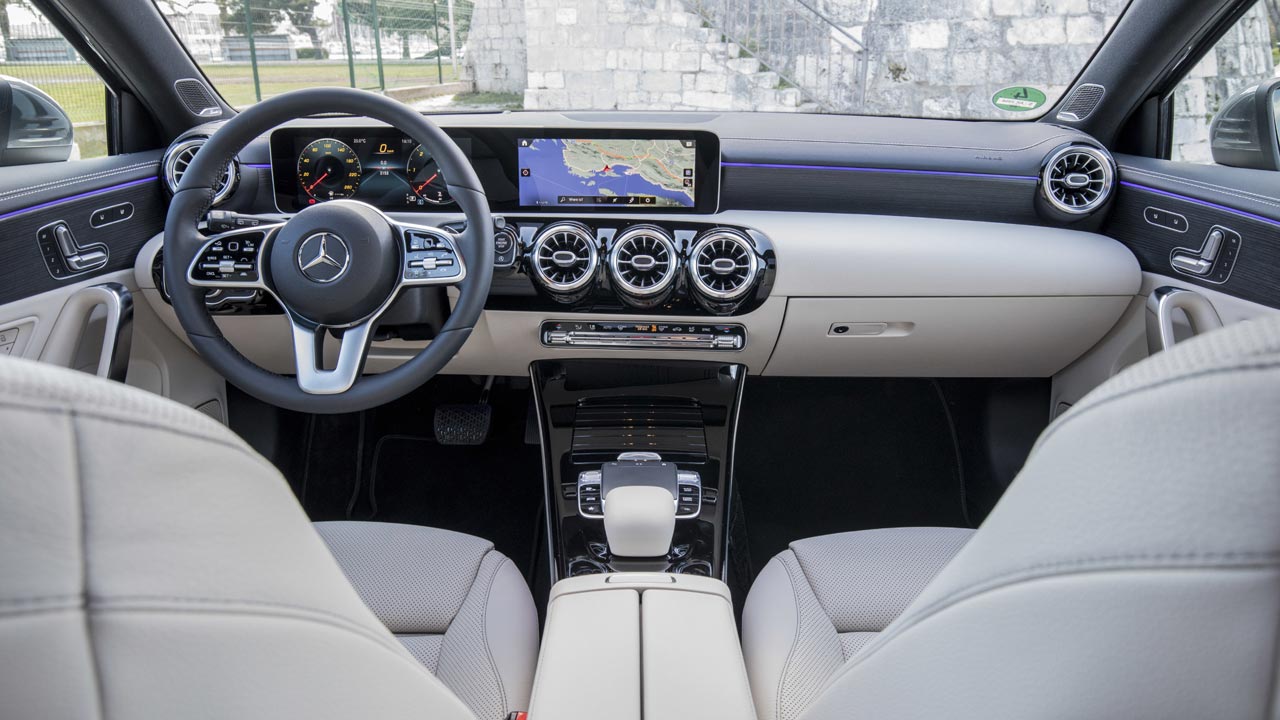 Η σπορ εμφάνιση του μοντέλου έχει ενισχυθεί, ενώ οι χώροι, η χρηστικότητα και η λειτουργικότητά του έχουν βελτιωθεί σημαντικά. Επιπλέον, η νέα Mercedes A-Class διαθέτει έναν επαναστατικό σχεδιασμό στο εσωτερικό της που δεν αφήνει κανέναν ασυγκίνητο, εκπροσωπώντας την επόμενη ημέρα στη σχεδιαστική ταυτότητα «Sensual Purity» που τη διέκρινε στην προηγούμενη γενιά της. Το ταμπλό οργάνων και το κόκπιτ προσδίδουν στιλ «Avant-garde», γεγονός που δημιουργεί μία μοναδική αρχιτεκτονική. Οι δε δύο οθόνες στο ταμπλό φτάνουν έως τις 10.25 ίντσες (26 cm) και προστατεύονται από ένα κρυστάλλινο κάλυμμα (εκτός από τη βασική έκδοση με δύο οθόνες 7 ιντσών) για να δημιουργήσουν ένα εντελώς αυτόνομο κόκπιτ ευρείας οθόνης.