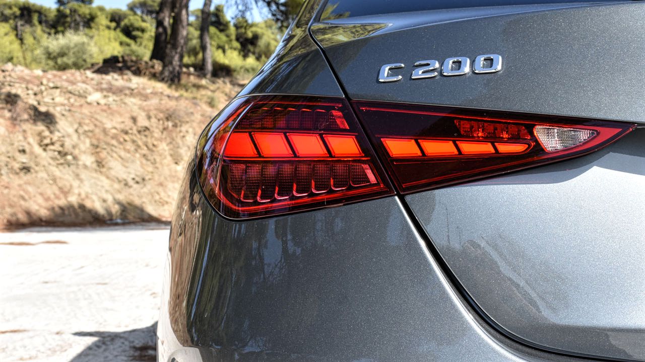 Από την πρώτη στιγμή που βλέπεις τη νέα Mercedes C-Class ενθουσιάζεσαι. Οι σχεδιαστές της γερμανικής μάρκας έχουν καταφέρει να πάρουν την σχεδιαστική φιλοσοφία της S-Class και να την μεταφέρουν στη μικρότερη C-Class με τρόπο ιδανικό, χωρίς να χάνει σε καμία περίπτωση από την αίγλη της. Στο εμπρός μέρος κυριαρχεί παραδοσιακά η μεγάλη, κυψελώδης μάσκα με το αστέρι στο κέντρο της, ενώ ο προφυλακτήρας έχει ένα μεγάλο άνοιγμα που εξυπηρετεί την αναπνοή του αυτοκινήτου αλλά και την αισθητική του. Τα φώτα έχουν μικρύνει ελαφρώς προκειμένου να υπηρετήσουν τις γραμμές του καπό και των φτερών εμπρός, ενώ στο πλάι δύο νεύρα… σχίζουν το αμάξωμα και καταλήγουν στο πίσω φτερό. Στο πίσω μέρος η ένταση… μειώνεται, καθώς οι γραμμές είναι πιο “ήσυχες”. Στο κάτω μέρος του προφυλακτήρα υπάρχει διαχύτης σε μαύρο χρώμα, ενώ στο πίσω καπό, υπάρχει ένα μικρό ενσωματωμένο “φρύδι” που υπηρετεί την αεροδυναμική. Μία αεροδυναμική κορυφαία για την κατηγορία, με συντελεστή οπισθέλκουσας 0,24 Cd. Περνώντας στις διαστάσεις της νέας C-Class, το μήκος της σεντάν έκδοσης που δοκιμάζουμε εδώ είναι στα 4.751 χλστ. (4.686 χλστ. ήταν η προηγούμενη C-Class), ενώ πλάτος και ύψος είναι στα 2.033 χλστ. (με τους εξωτερικούς καθρέφτες) και 1.438 χλστ. αντίστοιχα. Το μεταξόνιο του αυτοκινήτου είναι στα 2.865 χλστ. (+25 χλστ. από το μοντέλο που αντικαθιστά).