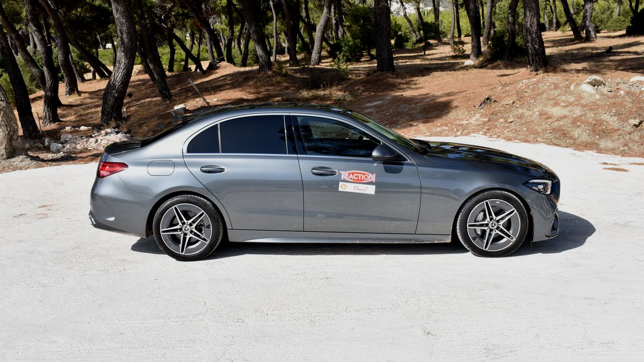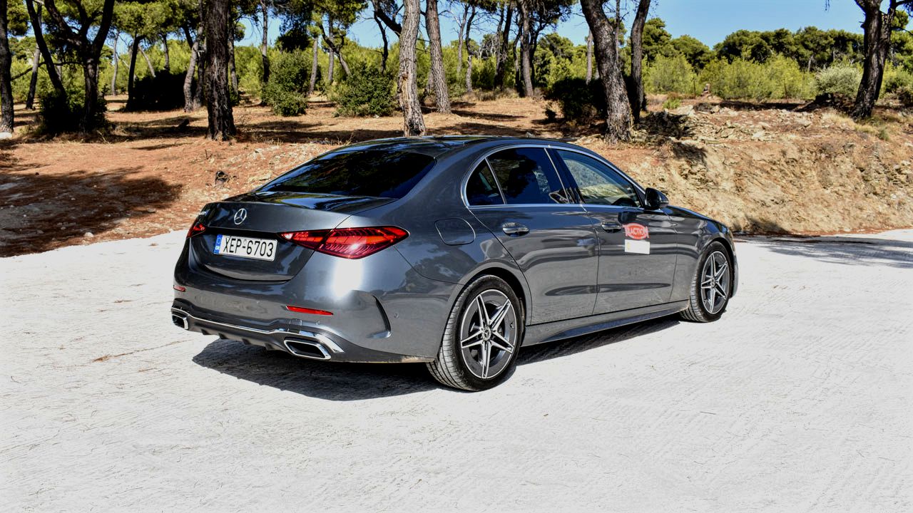 Στη νέα της γενιά η Mercedes C-Class είναι εξηλεκτρισμένη. Αυτό σημαίνει πως πλέον, το έργο του κινητήρα εσωτερικής καύσης έχει την υποβοήθηση ενός ηλεκτρικού μοτέρ. Η νέα Mercedes C 200 της δοκιμής μας λοιπόν, κινείται από νέας γενιάς 4κύλινδρο βενζινοκινητήρα 1,5 λτ., ο οποίος με την βοήθεια τούρμπο αποδίδει 204 ίππους στις 5.800-6.100 σ.α.λ. και 300 Nm ροπής από τις 1.800 έως και τις 4.000 σ.α.λ. Φυσικά συνεργάζεται με το ήπια υβριδικό σύστημα EQ Boost (αποτελείται από κύκλωμα 48Volt και έναν εναλλάκτη/γεννήτρια, που φροντίζει να υποβοηθά τον κινητήρα). Αυτό χαρίζει επιπλέον 20 ίππους και 200 Nm ροπής. Όπως όλα τα συστήματα του είδους έτσι και εδώ έχουμε ανάκτηση ενέργειας κατά το ρολάρισμα του αυτοκινήτου και την επιβράδυνση. Η συνεργασία με το 9άρι αυτόματο κιβώτιο με χειριστήρια στο τιμόνι είναι αγαστή και χαρίζει στο αυτοκίνητο πολύ καλές επιδόσεις. Συγκεκριμένα για το 0-100 χλμ./ώρα η C 200 χρειάζεται 7,3 δλ. και έχει τελική ταχύτητα 246 χλμ./ώρα. Στην πράξη το μοτέρ έχει εξαιρετική απόκριση στο βύθισμα του γκαζιού και είναι γεμάτο δύναμη σε όλο το φάσμα στροφών, με την ηλεκτρική υποβοήθηση να παίζει τον δικό της ρόλο στην αίσθηση αυτή. Όσον αφορά τη μέση κατανάλωση του αυτοκινήτου, αυτή σύμφωνα με τη Mercedes είναι στα 6,4 λίτρα/100 χλμ. Εμείς είδαμε στην πράξη 8,0 λίτρα/100 χλμ. κατά την διάρκεια της δοκιμής μας.