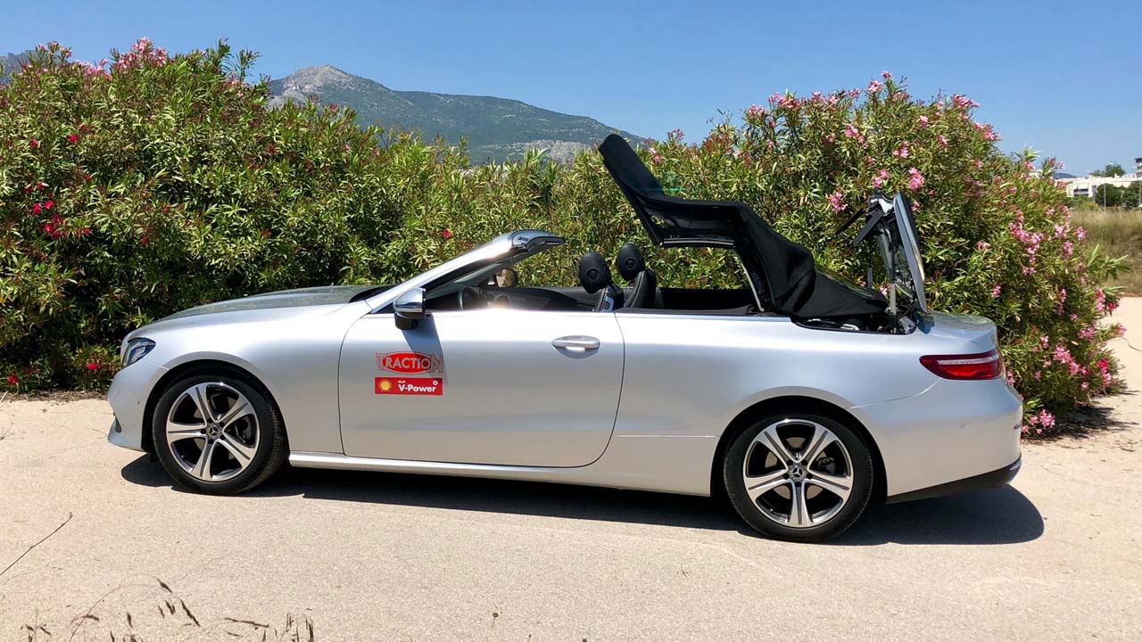 Κατά τη διάρκεια της δοκιμής μας πραγματοποιήσαμε αρκετά χιλιόμετρα τόσο σε αστικό περιβάλλον όσο και σε αυτοκινητόδρομο. Είτε με την οροφή ανοικτή είτε κλειστή (η όλη διαδικασία χρειάζεται μόλις 20’’ και μπορεί να πραγματοποιηθεί με ταχύτητες έως 50 χλμ./ώρα με το πάτημα ενός διακόπτη) είναι απολαυστική. Κατά τη διάρκεια του ταξιδιού και με την οροφή κλειστή δύσκολα αντιλαμβάνεσαι πως πρόκειται για cabrio αυτοκίνητο με υφασμάτινη οροφή. Η μόνωση που προσφέρει είναι μοναδική και φυσικά απουσιάζει παντελώς το «φούσκωμα» της οροφής. Ακόμα και με ταχύτητες που πλησίαζαν τα όρια των αυτοκινητοδρόμων η E–Class Cabrio συμπεριφερόταν σχεδόν σαν ένα coupe όχημα με πλήρη απουσία αεροδυναμικών θορύβων και στρεβλώσεων. Από εκεί και πέρα όταν η οροφή ανοίγει η οδήγηση γίνεται ακόμα πιο απολαυστική ενώ με το σύστημα AIRCAP, που αναλύσαμε παραπάνω, δεν κουράζει τους επιβάτες ακόμα και μετά από αρκετά χιλιόμετρα διαδρομής