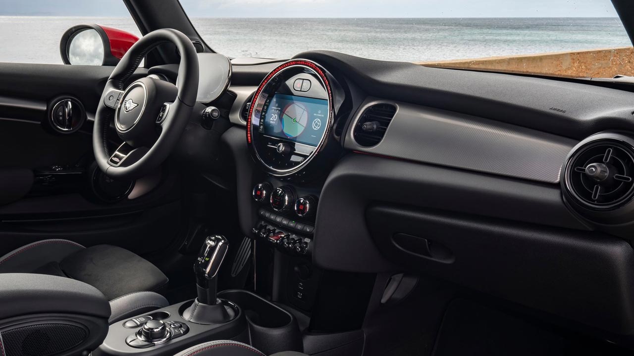 Τυπικό δείγμα γραφής είναι και το εσωτερικό του MINI Cooper John Cooper Works, το οποίο ακολουθεί τα σχεδιαστικά μονοπάτια των υπόλοιπων εκδόσεων. Προφανώς και εδώ υπάρχουν οι απαραίτητες αλλαγές, που έρχονται για να δικαιολογήσουν τον χαρακτήρα του μοντέλου. Τα σπορ μπάκετ καθίσματα και το δερμάτινο τιμόνι με τα χειριστήρια είναι το πρώτο πράγμα που θα παρατηρήσεις ανοίγοντας την πόρτα, ενώ αμέσως μετά το βλέμμα σου θα πάει στην μικρή, ψηφιακή οθόνη που έχει πάρει την θέση του κλασσικού πίνακα οργάνων και το κυκλικό στοιχείο στο κέντρο του ταμπλό που φιλοξενεί και την οθόνη αφής για τα πολυμέσα. Μάλιστα έχει φωτιζόμενη περίμετρο που αλλάζει χρώμα αναλόγως του προγράμματος οδήγησης και των διάφορων ειδοποιήσεων για τον οδηγό. Τα υλικά που έχουν χρησιμοποιηθεί είναι εξαιρετικής ποιότητας και φινιρίσματος, ενώ συναρμολόγηση και συναρμογή σε πείθουν για την προσοχή που έχει δοθεί στην λεπτομέρεια. Οι χώροι είναι αναμενόμενα μέτριοι. Όπως και σε κάθε άλλο τρίθυρο MINI. Οι εμπρός δεν θα έχουν πρόβλημα. Έχουν αρκετό χώρο και αρκετές θήκες για μικροαντικείμενα. Όμως, πίσω το κάθισμα με συνδυασμό δύο ανεξάρτητων θέσεων δεν έχει ιδιαίτερο χώρο για τα γόνατα. Ο χώρος αποσκευών είναι στα 211 λίτρα.