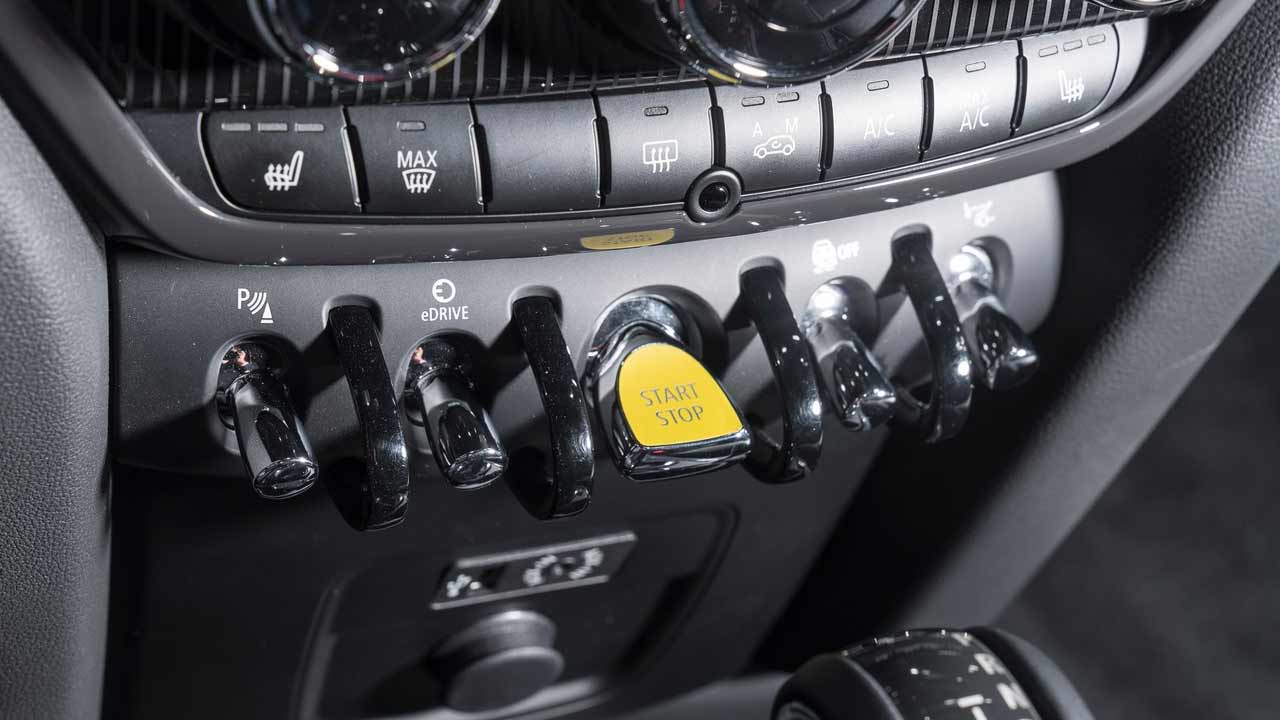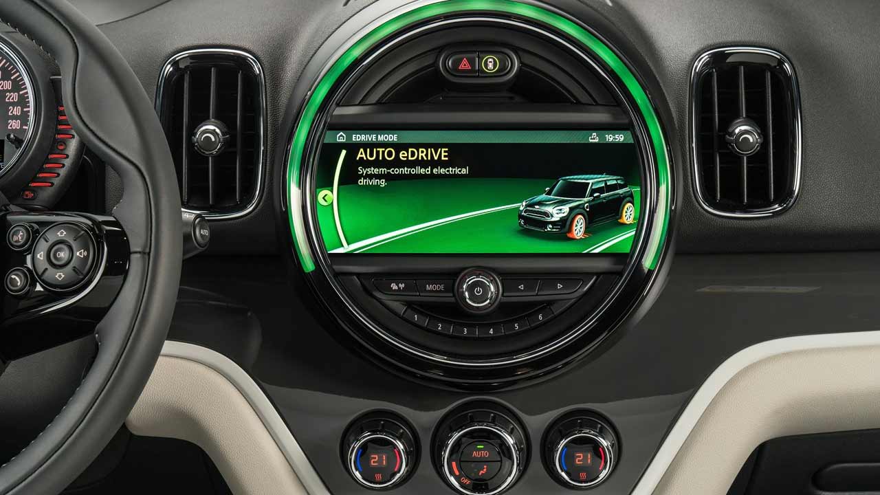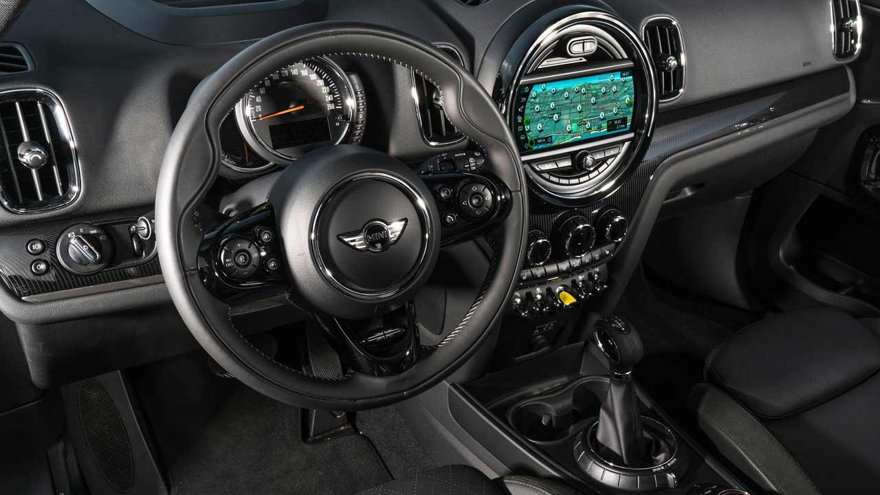 Το εσωτερικό του MINI Cooper S E Countryman ALL4, ακολουθεί την ίδια λογική με την σχεδίαση του αμαξώματος. Βαδίζει πιστά στα χνάρια των συμβατικών εκδόσεων και ξεχωρίζει σε λεπτομέρειες. Αυτές έχουν να κάνουν με τις ενδείξεις του πίνακα οργάνων, ο οποίος προφανώς ενημερώνει για την ηλεκτρική ενέργεια, εκτός των άλλων και με το button εκκίνησης που είναι σε κίτρινο και όχι σε κόκκινο χρώμα. Φυσικά υπάρχει και εδώ το μεγάλο στρογγυλό όργανο που συναντάμε και σε άλλα μοντέλα της MINI στο κέντρο του ταμπλό, με οθόνη αφής των 6,5 ιντσών του συστήματος πολυμέσων (προαιρετικά 8,8 ιντσών), ενώ τα υλικά που έχουν χρησιμοποιηθεί είναι κορυφαία. Οι χώροι ικανοποιούν ακόμη και στην περίπτωση μεταφοράς πέντε ενηλίκων και το πορτμπαγκάζ των 405 λίτρων είναι αρκετό (45 λίτρα μικρότερο από των συμβατικών εκδόσεων λόγω ύπαρξης μπαταριών).