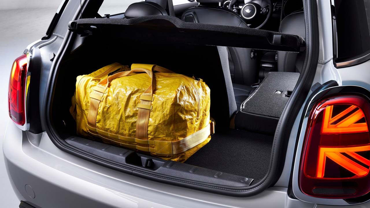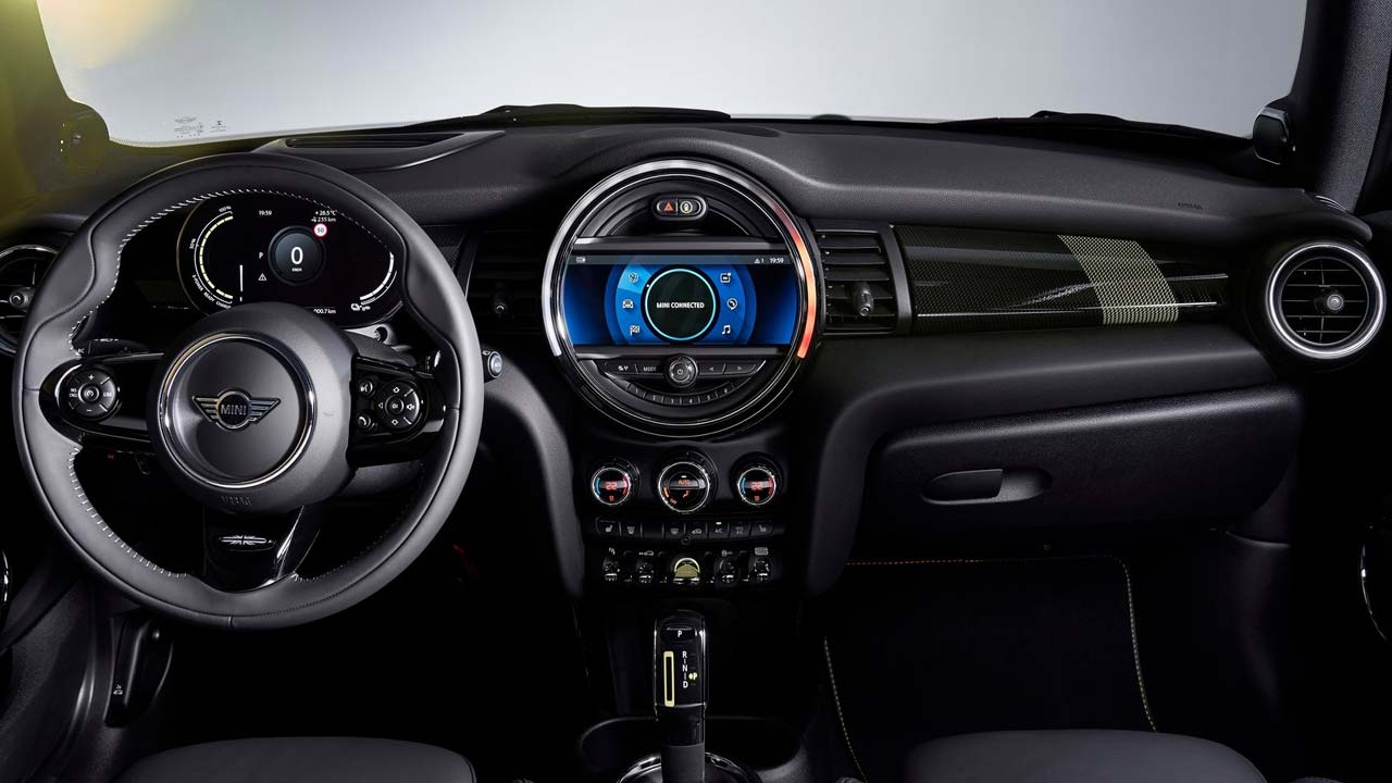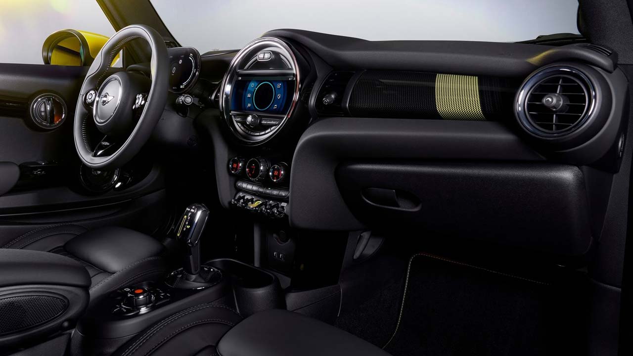 Στην MINI κατάφεραν να κρατήσουν την ευρυχωρία της ηλεκτρικής έκδοσης στα επίπεδα των αντίστοιχων συμβατικών μοντέλων. Έτσι, οι δύο εμπρός έχουν αρκετό χώρο διαθέσιμο αλλά και θήκες μικροαντικειμένων, ενώ πίσω δύο άτομα θα κάνουν κάποιες θυσίες. Όπως και στα συμβατικά μοντέλα. Ο χώρος αποσκευών είναι και αυτός ίδιος στα 211 λίτρα, ενώ με την αναδίπλωση της πλάτης των πίσω καθισμάτων φτάνει στα 731 λίτρα. Αλλαγές σαφώς και υπάρχουν σε σχέση με τις συμβατικές εκδόσεις. Εκτός από την αισθητική και τις χρωματικές λεπτομέρειες, ο πίνακας οργάνων έχει αντικατασταθεί από έγχρωμη οθόνη πληροφοριών 5,5 ιντσών, ενώ στο κέντρο του ταμπλό και στο εσωτερικού του κυκλικού οργάνου δεσπόζει η οθόνη του συστήματος πολυμέσων. Άλλα ιδιαίτερα χαρακτηριστικά του εσωτερικού περιλαμβάνουν έναν ειδικό επιλογέα στην κεντρική κονσόλα. Το νέο MINI Cooper SE εφοδιάζεται επίσης με ηλεκτρικό χειρόφρενο που ενεργοποιείται μέσω ενός διακόπτη στην κεντρική κονσόλα.
