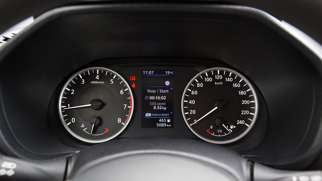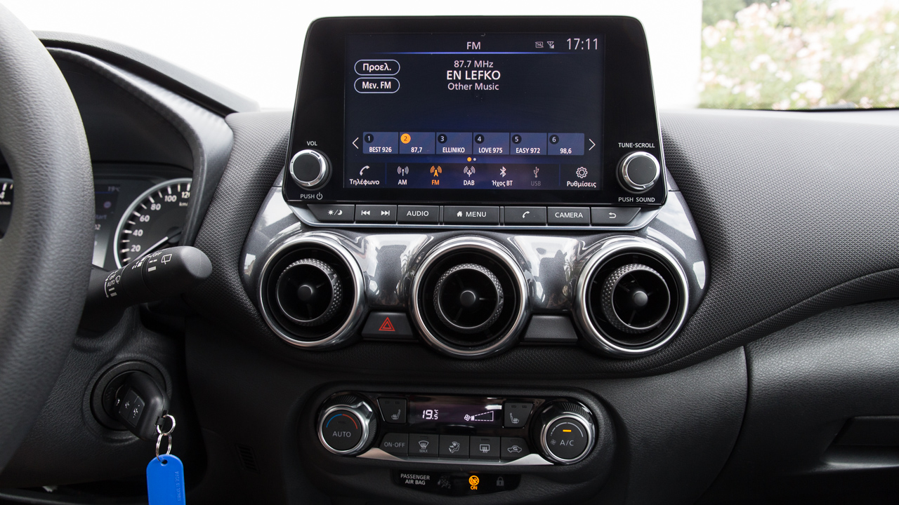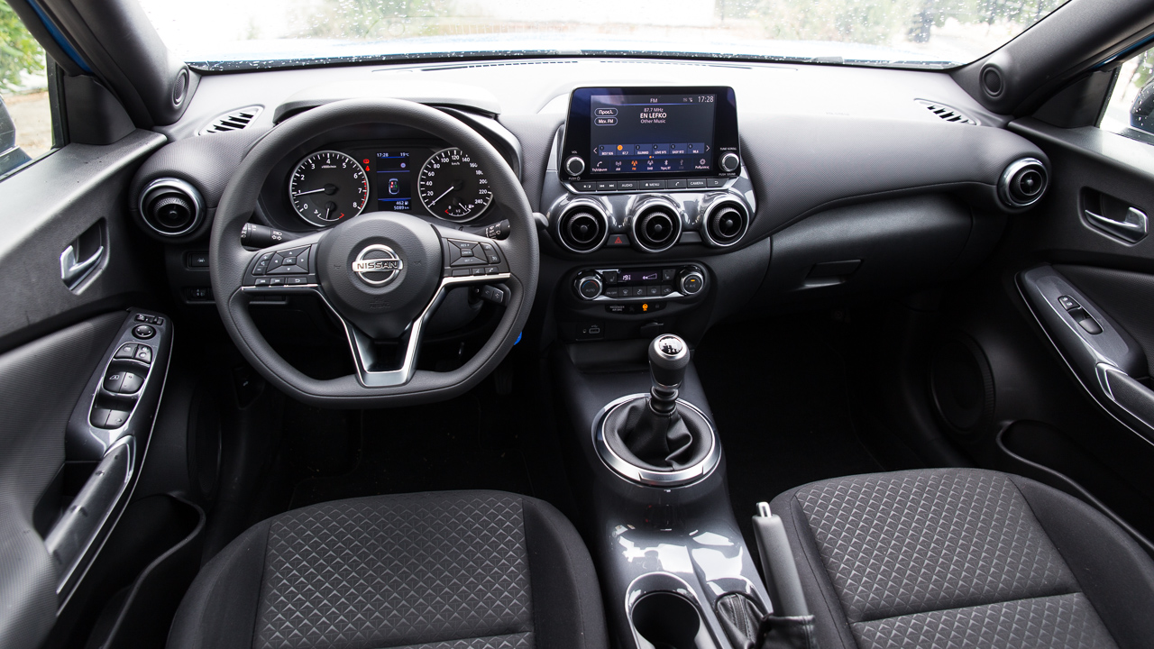 Στην περίπτωση του αυτοκινήτου δοκιμής, το οποίο ανήκει στην έκδοση Acenta, στην κεντρική κονσόλα συναντάμε μία οθόνη αφής μεγέθους 8 ιντσών. Μέσω αυτής, ο οδηγός μπορεί να απολαύσει υπηρεσίες συνδεσιμότητας (Android Auto / Apple CarPlay), ενώ δεν απουσιάζει η κάμερα οπισθοπορείας. Επίσης, συστήματα όπως η αναγνώριση πεζών και δικυκλιστών (Intelligent Emergency Braking), η αναγνώριση σημάτων κυκλοφορίας (Traffic Sign Recognition) και το σύστημα προειδοποίησης αλλαγής λωρίδας (Intelligent Lane Intervention and Warning) “εκτοξεύουν” τα επίπεδα ασφαλείας που προσφέρει η δεύτερη γενιά Nissan Juke.