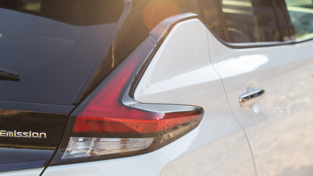 Η δεύτερη γενιά του LEAF, σε αντίθεση με την πρώτη, παρουσιάζεται πλήρως “ενσωματωμένη” σχεδιαστικά στη γκάμα της ιαπωνικής εταιρίας. Η συγγένεια με τα υπόλοιπα σύγχρονα μοντέλα της Nissan είναι εμφανέστατη στο εμπρός μέρος, ενώ και στο πίσω μέρος βλέπουμε στοιχεία που δίνουν το “παρών” στη γκάμα των Ιαπώνων. Το σχήμα των φωτιστικών σωμάτων, αποτελεί μια διαφορετική προσέγγιση στα αντίστοιχα σώματα της προηγούμενης γενιάς του Juke, ενώ έχουν παράλληλα και κάτι από Micra.