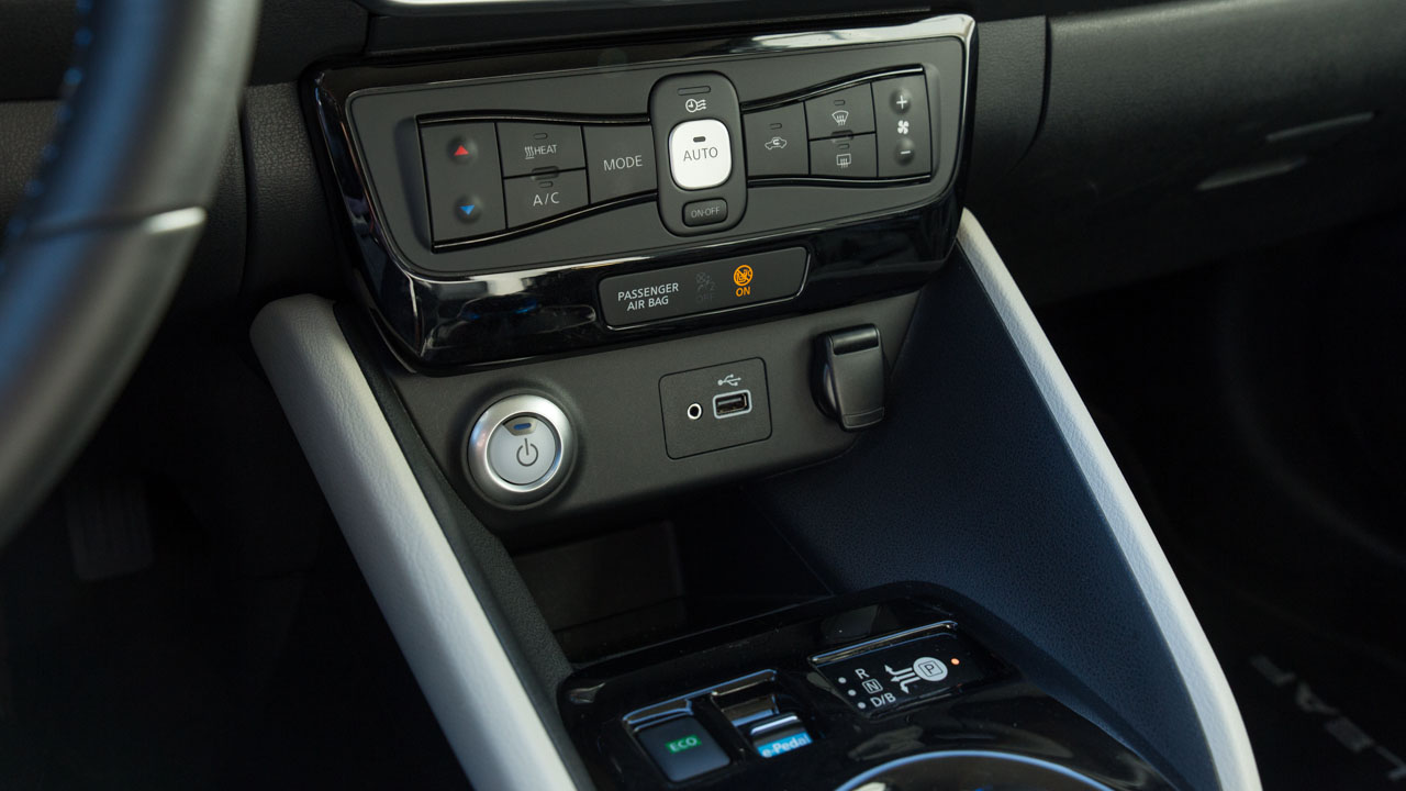 Διαφορές μεταξύ της ισχυρότερης και της στάνταρ έκδοσης δεν υπάρχουν ούτε στο εσωτερικό. Ο οδηγός εξοικειώνεται γρήγορα με τα χειριστήρια και τα κουμπιά αλλά και την οθόνη αφής των οχτώ ιντσών που προσφέρει μπόλικες πληροφορίες, σε συνδυασμό με την οθόνη του πίνακα πληροφοριών πίσω από το τιμόνι. Το LEAF προσφέρει λεπτομερή πληροφόρηση για την κατάσταση της μπαταρίας, τη διαθέσιμη αυτονομία αλλά και την κατανάλωση ηλεκτρικής ενέργειας από το ίδιο το μοτέρ αλλά και τα περιφερειακά συστήματα του αυτοκινήτου, μαζί με όλες τις άλλες πληροφορίες, ανέσεις και επιλογές συνδεσιμότητας που προσφέρει ένα σύγχρονο συμβατικό αυτοκίνητο αντίστοιχης τιμής. Το LEAF δίνει μάλιστα τη δυνατότητα και απομακρυσμένου ελέγχου και πληροφόρησης μέσω σχετικής εφαρμογής που μπορείτε να κατεβάσετε στο κινητό σας.