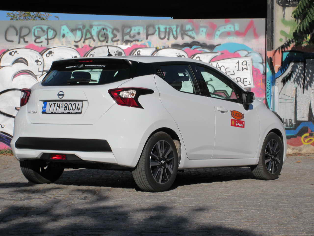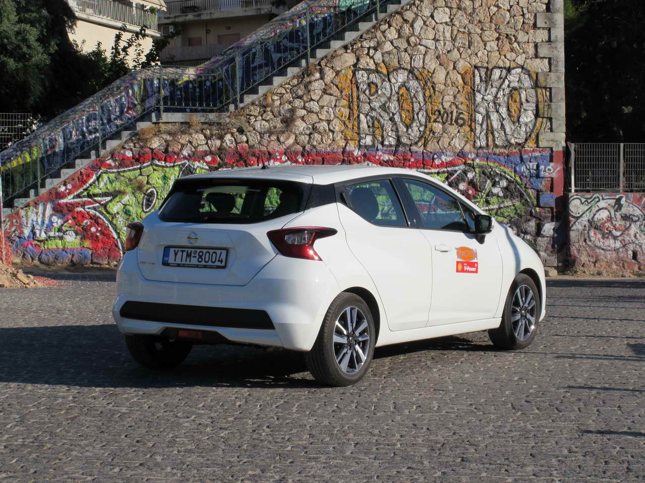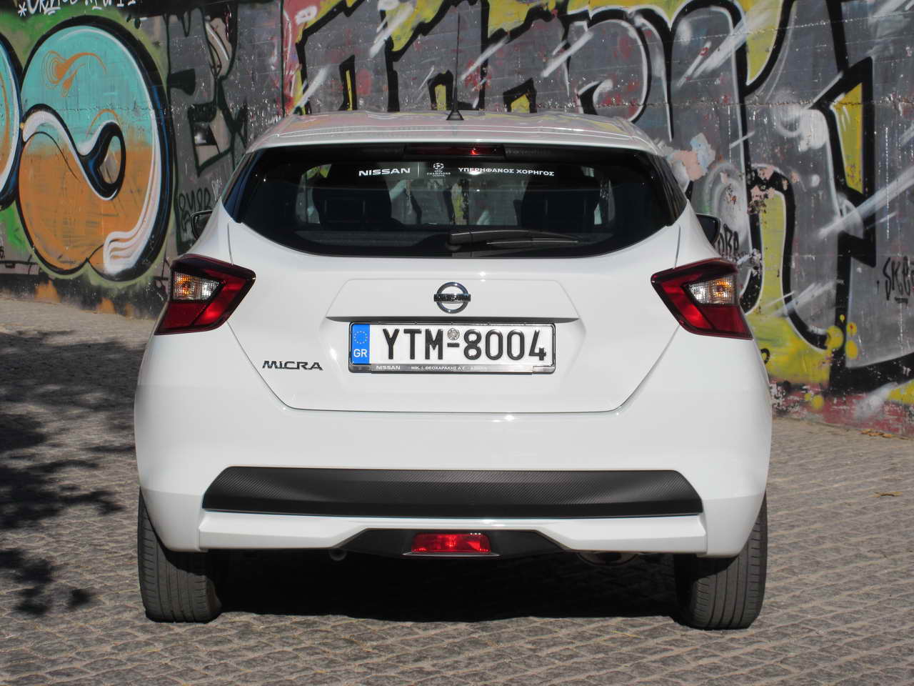 H 5η γενιά του είναι και η πιο ρηξικέλευθη. Έχοντας σχεδιαστεί από την αρχή, το αμιγώς 5θυρο Nissan Micra είναι ένα διαφορετικό, σαφώς μεγαλύτερο, αυτοκίνητο. Δεν είναι τόσο οι διαστάσεις (μήκος 3999, πλάτος 1743, ύψος 1455 και μεταξόνιο 2525 χιλιοστά) όσο η εκμετάλλευσή τους, που κάνει τη διαφορά εντός και εκτός. Σχεδιαστικά, το εμπρός μέρος “φωνάζει” Nissan, χάρη στην εμπρός μάσκα με το χαρακτηριστικό “V-Motion”. Τα φώτα εμπρός και πίσω και η σιλουέτα του αυτοκινήτου, προδίδουν έναν σπορ χαρακτήρα. Ανάλογη η εικόνα στο εσωτερικό, όπου τα υλικά θυμίζουν μεγαλύτερης κατηγορίας αυτοκίνητο. Η ευρυχωρία, πάντοτε ενθυμούμενοι πως βρισκόμαστε σε όχημα πόλης, βρίσκεται στα επιθυμητά επίπεδα, ενώ τα 300 λίτρα αποσκευών κρίνονται ικανοποιητικά. Το Nissan Micra 1.0 IG-T προσφέρεται σε εκδόσεις με τροχούς 15,16 ή 17 ιντσών.