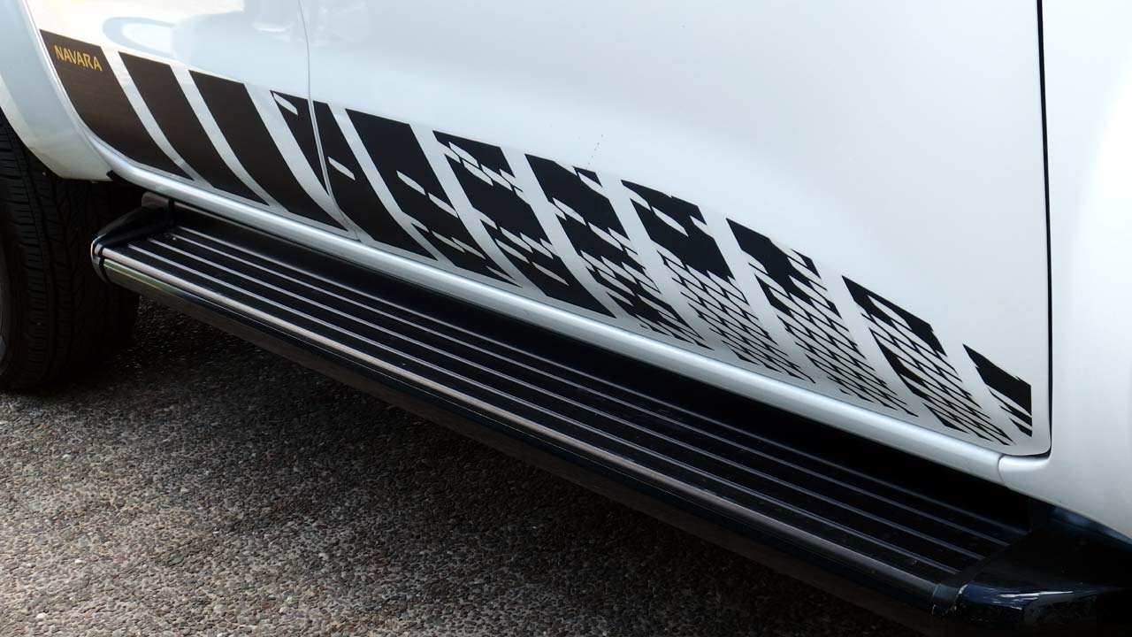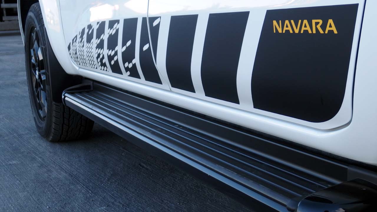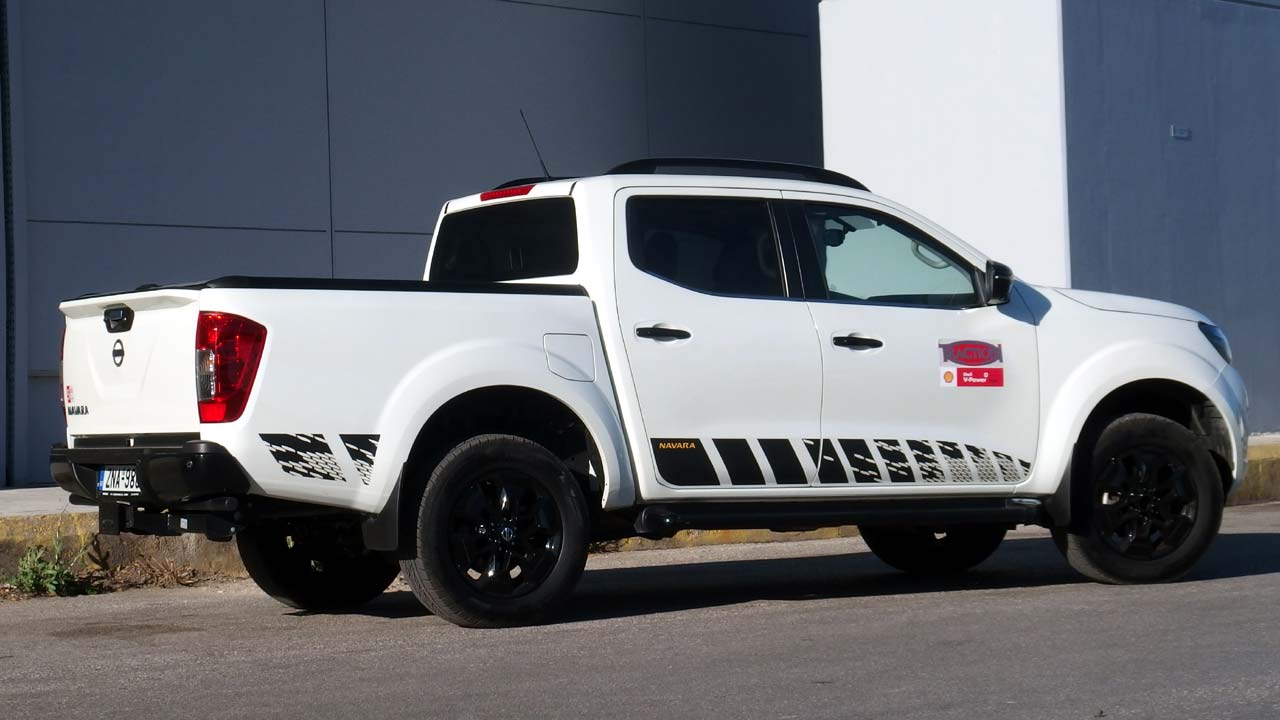 Το φρεσκαρισμένο Nissan Navara N-Guard τώρα, που είναι και η έκδοση της δοκιμής μας, αποκτά νέα στοιχεία στον εξοπλισμό του που βελτιώνουν το look του, τη χρηστικότητα του αλλά και την άνεση των επιβατών. Η πλαστική επένδυση της καρότσας πέρα από την προστασία που προσφέρει σε αυτό το σημείο απορροφά πιο αποτελεσματικά τον ήχο ενώ είναι παράλληλα και πιο ανθεκτική. Μπορεί να κλειδώσει, ενώ διαθέτει και μετακινούμενες βάσεις/γάντζους πλευρικά κατά τον διαμήκη άξονα, για την στερέωση αντικειμένων. Το αναθεωρημένο σύστημα πέδησης, αλλά και η ανάρτηση, παραμένουν ως έχουν στις απλές εκδόσεις, όπως και ο κινητήρας πετρελαίου με τα δύο turbo που αποδίδει 190 ίππους και 450 Nm ροπής. Υπάρχουν επίσης ζάντες σε μαύρο χρώμα, σκαλοπάτια, ράγες οροφής, μαύρη gloss μάσκα και ίδιου χρώματος εξωτερικοί καθρέφτες καθώς και αυτοκόλλητα.
