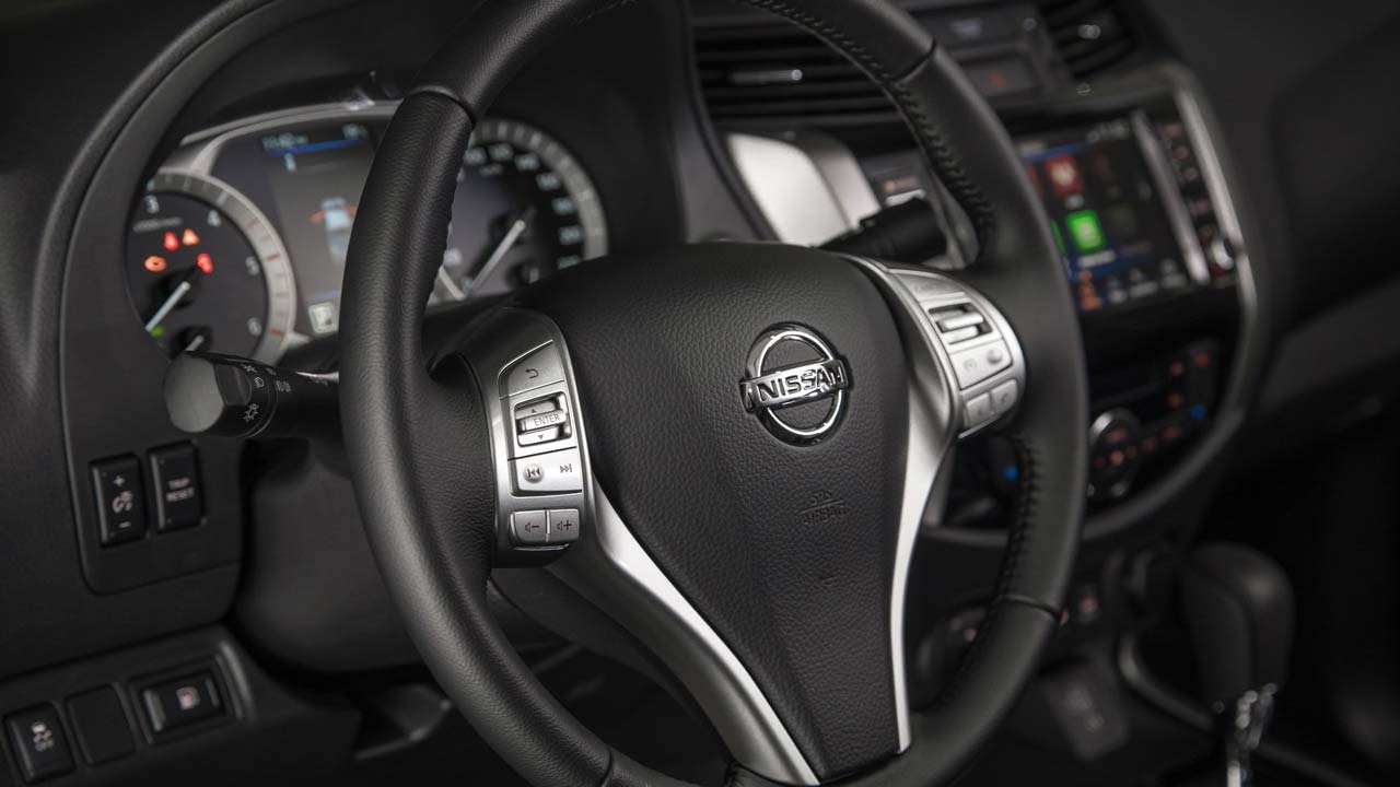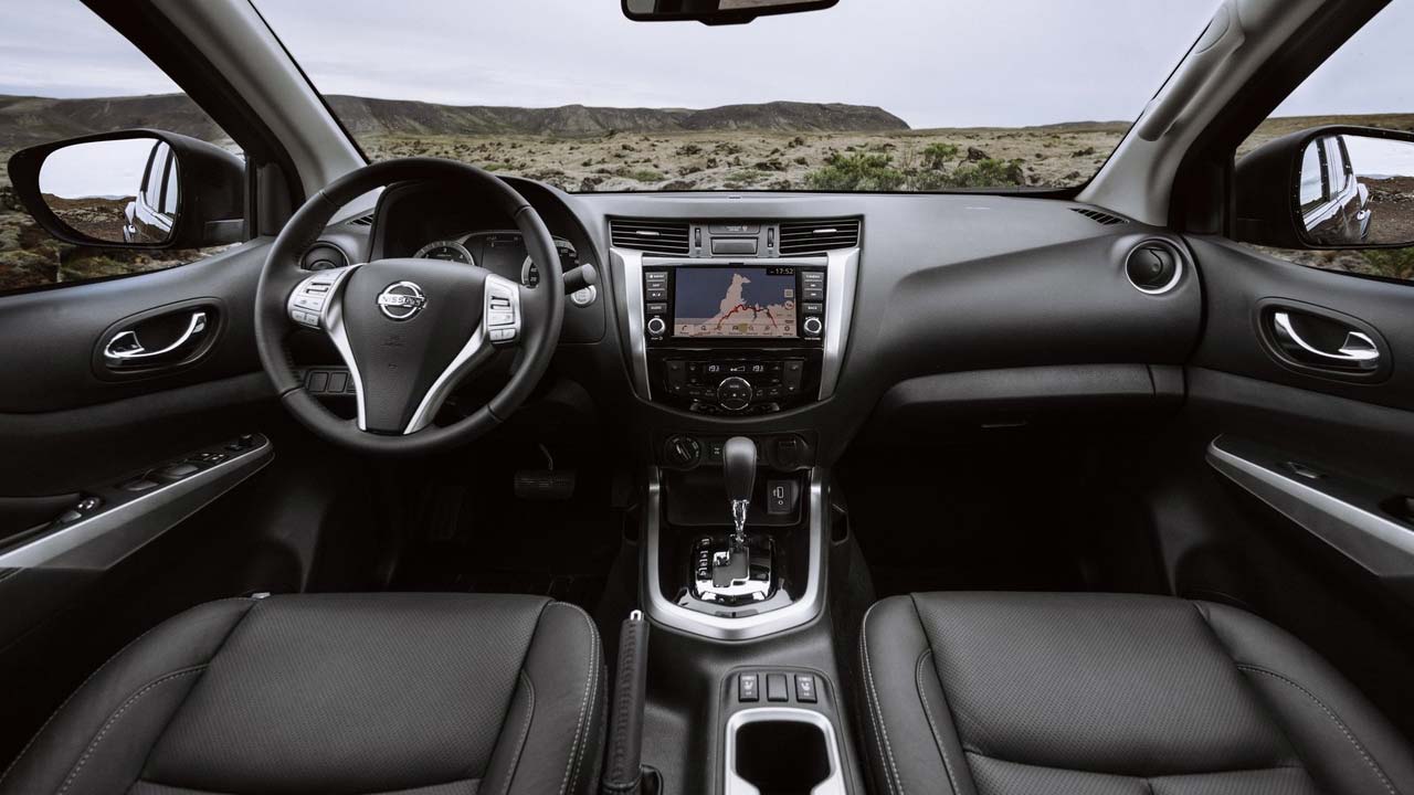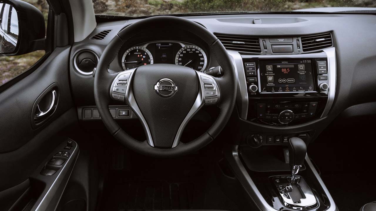Το εσωτερικό του Nissan Navara N-Guard δεν έχει τίποτα να ζηλέψει από ένα SUV και κυριολεκτούμε. Χώροι για πέντε, πολλές θήκες και μάλιστα ευρύχωρες, δερμάτινες επενδύσεις, ηλιοροφή και κρυφός φωτισμός, μόνο σε… αγροτικό δεν παραπέμπουν. Στον εξοπλισμό ασφάλειας της έκδοσης περιλαμβάνονται μεταξύ άλλων και το σύστημα υποβοήθησης έκτακτης ανάγκης, το σύστημα περιμετρικής παρακολούθησης Intelligent Around View Monitor, αλλά και το σύστημα υποβοήθησης εκκίνησης σε ανηφόρες. Στα αξιοσημείωτα νέα χαρακτηριστικά του ανανεωμένου Nissan Navara περιλαμβάνεται και το Intelligent Trailer Sway Assist. Αυτό το νέο σύστημα ανιχνεύει την κλίση του ρυμουλκούμενου και πραγματοποιεί ανεπαίσθητες διορθώσεις με μεμονωμένη πέδηση σε κάθε τροχό και μείωση της ροπής του, διατηρώντας υπό έλεγχο τόσο το όχημα, όσο και το ρυμουλκούμενο. Τα Intelligent Emergency Braking, Hill Start Assist, Hill Descent Control και Intelligent Around View Monitor συμπεριλαμβάνονται στον εξοπλισμό. Στον τομέα του εξοπλισμού άνεσης και συνδεσιμότητας το Navara N-Guard φέρει το γνωστό σύστημα πολυμέσων NissanConnect το οποίο επωφελείται από μια βελτιωμένη έκδοση της οθόνης αφής των 8 ιντσών, ενώ προσφέρει βελτιωμένη πλοήγηση, ανανέωση λογισμικού ove-the-air και ενσωματώνει τα πρωτόκολλα Apple CarPlay και Android Auto.