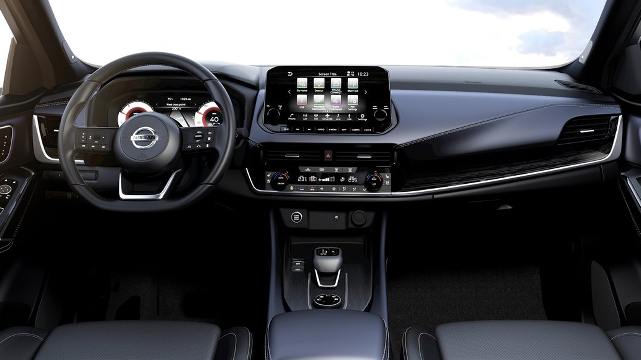 Προφανώς και σε ένα ολοκαίνουργιο αυτοκίνητο, εξολοκλήρου νέα είναι και η καμπίνα των επιβατών. Όλα είναι σχεδιασμένα από την αρχή, ενώ και τα υλικά είναι προσεγμένα. Όλη η επιφάνεια του ταμπλό καλύπτεται από μαλακό υλικό μέχρι τη μέση, ενώ το ίδιο ισχύει και για τα πάνελ των θυρών εμπρός. Τα σημεία επαφής με τους αγκώνες του οδηγού είναι και αυτά μαλακά τόσο στο υποβραχιώνιο της πόρτας όσο και σε αυτό ανάμεσα στα καθίσματα οδηγού-συνοδηγού, αν και δεν έχει ρύθμιση ύψους το τελευταίο. Από τη μέση και κάτω τόσο στο ταμπλό, όσο και στις εμπρός πόρτες τα υλικά είναι σκληρά και ανθεκτικά σε χτυπήματα, γδαρσίματα κλπ. Τα πάνελ των πίσω θυρών από την άλλη είναι εξολοκλήρου από σκληρό πλαστικό. Η εργονομία είναι εξαιρετική και το ίδιο ισχύει και για την περιμετρική ορατότητα του αυτοκινήτου. Μικρή εξοικείωση θα χρειαστεί μόνο με το σύστημα πολυμέσων και την οθόνη αφής. Ο πίνακας οργάνων με τα αναλογικά όργανα και την ψηφιακή οθόνη είναι ευανάγνωστος και πλήρης ενδείξεων (υπάρχει και πλήρως ψηφιακός πίνακας οργάνων, όπως αυτός που φαίνεται στις εικόνες), ενώ τα χειριστήρια στο τιμόνι είναι σωστά τοποθετημένα. Οι χώροι είναι άνετοι για τους εμπρός επιβάτες, με αρκετές και ευρύχωρες θήκες για μικροαντικείμενα, ενώ οι “τσέπες” στις πόρτες είναι αρκετά μεγάλες. Πίσω εύκολα θα βολευτούν δύο ενήλικες, ενώ και τρίτος μεσαίου αναστήματος δεν θα έχει πρόβλημα σε μικρές μετακινήσεις (τα καλά του μεγαλύτερου μεταξόνιου είναι ο αυξημένος χώρος για τα γόνατα των πίσω επιβατών). Το τούνελ δαπέδου δεν είναι έντονο και δεν θα ενοχλήσει ιδιαίτερα τα πόδια του μεσαίου επιβάτη, ενώ απουσιάζουν οι αεραγωγοί για τους πίσω. Στα σημαντικά, το σχεδόν κάθετο άνοιγμα 90 μοιρών των πίσω θυρών ως προς το αμάξωμα, κάτι που διευκολύνει το μπες/βγες στο πίσω κάθισμα. Ευπρόσδεκτος είναι ο νυχτερινός φωτισμός, ενώ τα καθίσματα είναι αναπαυτικά. Η μεγαλύτερης και υψηλότερης ανάλυσης 9 ιντσών οθόνη (προσφέρεται και μεγαλύτερη 12,3 ιντσών) του NissanConnect είναι μια ψηφιακή πύλη για τις ρυθμίσεις της πλοήγησης, της ψυχαγωγίας, αλλά και του οχήματος και είναι συμβατή με το Android Auto και το Apple CarPlay. Τα πολλαπλά προφίλ χρήστη με ρυθμίσεις μνήμης επιτρέπουν την προσαρμογή της πλοήγησης, της μουσικής και των προτιμήσεων του συστήματος, ανάλογα με τις προτιμήσεις του εκάστοτε οδηγού. Όσον αφορά στον χώρο αποσκευών, αυτός είναι από 436 έως 504 λίτρα, ανάλογα με την διαμόρφωση της θέσης του δαπέδου. Αξίζει να σημειώσω εδώ, πως με την αναδίπλωση των πίσω καθισμάτων ο χώρος παραμένει επίπεδος (αν επιλέξετε την υψηλή θέση δαπέδου), ενώ υπάρχει και ρεζέρβα κάτω από το δάπεδο (και όχι κιτ επισκευής).