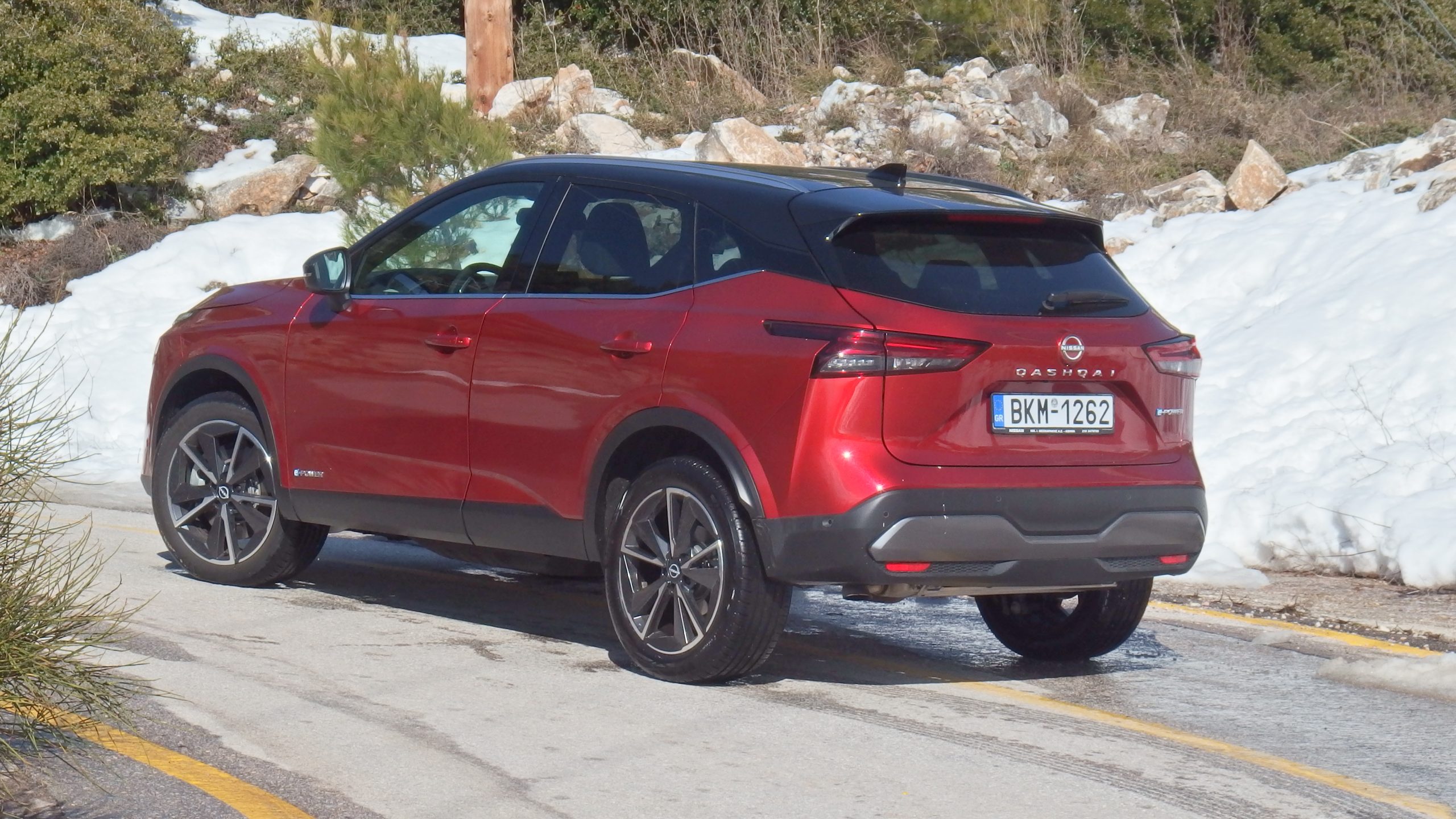 To Nissan Qashqai e-Power δεν είναι ακόμη ένα υβριδικό. Βλέπετε εδώ οι Ιάπωνες της Nissan χρησιμοποιήσαν όλη την τεχνογνωσία που έχουν αποκομίσει και από τους δύο κόσμους (θερμικό μοτέρ, ηλεκτροκίνηση) και μέσω της χρήσης κιβωτίου μιας σχέσης και της τεχνολογίας Linear Tune, η οποία παρακολουθεί τον βενζινοκινητήρα και αυξάνει σταδιακά την ταχύτητα περιστροφής του, καλύπτει πάντα τις ανάγκες φόρτισης του ηλεκτροκινητήρα. Έτσι εδώ δεν έχουμε να κάνουμε με ένα… παραδοσιακό υβριδικό όπου το θερμικό μοτέρ κινεί το αυτοκίνητο και αυτό γιατί εδώ το θερμικό μοτέρ είναι μόνο για να καλύπτει τις ανάγκες της ηλεκτροκίνησης. Στην πράξη έχουμε ένα αυτοκίνητο που σου προσφέρει την εμπειρία του ηλεκτρικού με εξαίρεση τον ελάχιστο θόρυβο του θερμικού μοτέρ, όταν αυτό χρειάζεται να λειτουργήσει. Και εδώ όπως και στο αμιγώς ηλεκτρικό LEAF υπάρχει το σύστημα e-Pedal, το οποίο ουσιαστικά κάνει το πεντάλ του φρένου… διακοσμητικό, καθώς επιβραδύνει το αυτοκίνητο, φορτίζοντάς το παράλληλα, κάθε φορά που αφήνουμε το πεντάλ γκαζιού. Όλα αυτά στην πράξη μας έκαναν να έχουμε πραγματική μέση κατανάλωση στα 6,0 λίτρα/100 χλμ. από το θερμικό, τρικύλινδρο μοτέρ των 1.5 λτ. με την απόδοση να είναι στους 190 ίππους. Η επιτάχυνση είναι 0-100 χλμ./ώρα στα 7,9 δλ. ενώ ο μόνος περιορισμός είναι στην τελική ταχύτητα, που φτάνει στα 170 χλμ./ώρα (περιορισμός σχετικά με τις συμβατικές εκδόσεις πάντα, γιατί δεν λες περιορισμό τα 170 χλμ./ώρα). Κατά τα άλλα έχουμε να κάνουμε με ένα αυτοκίνητο το οποίο οδηγικά δεν έχει να ζηλέψει τίποτα από τις συμβατικές εκδόσεις, ενώ είναι πιο ήσυχο και με λιγότερους κραδασμούς, προσφέροντας πάντοτε ακαριαία επιτάχυνση!
