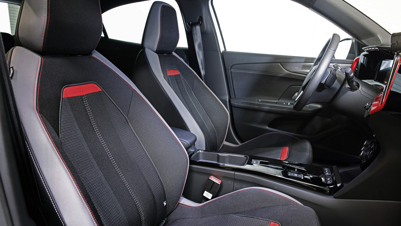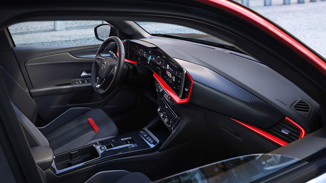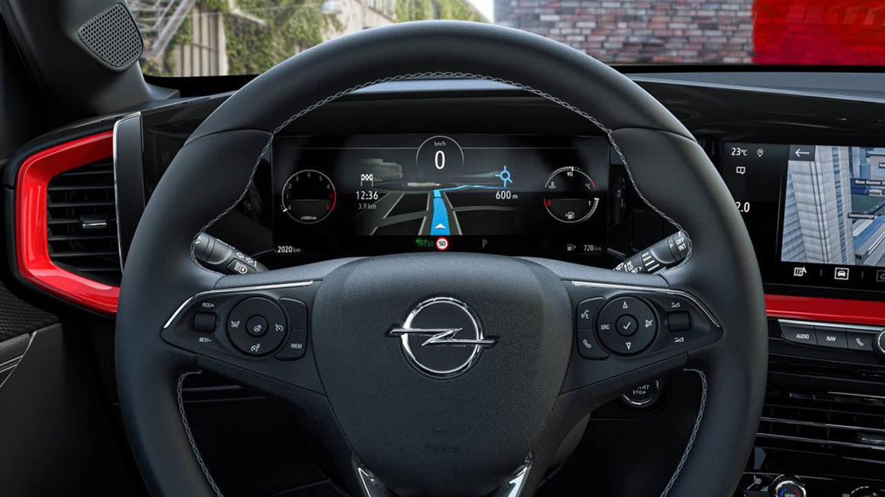 Στο εσωτερικό του ανανεωμένου Opel Mokka, ο οδηγός απολαμβάνει άριστη συνδεσιμότητα και ψυχαγωγία χάρη στο Opel Pure Panel. Πρόκειται για ένα ψηφιακό περιβάλλον που αποτελείται από δύο οθόνες. Το σύστημα πολυμέσων είναι συμβατό με Apple CarPlay και Android Auto. Τα υλικά που έχουν χρησιμοποιηθεί είναι πολύ καλά και αφήνουν μια ευχάριστη αίσθηση τόσο στην όψη όσο και στην αφή, ενώ η μονοτονία εξαλείφεται με τις κόκκινες λεπτομέρειες. Το άνω μέρος του ταμπλό είναι μαλακό, ενώ πιο χαμηλά τα πλαστικά είναι σκληρά. Αναφορικά με τους χώρους, το Opel Mokka φέρει αρκετές θήκες για μικροαντικείμενα λόγω της απουσίας επιλογέα (shift by wire), ενώ η εργονομία δεν απαιτεί κάποια ιδιαίτερη εξοικείωση.