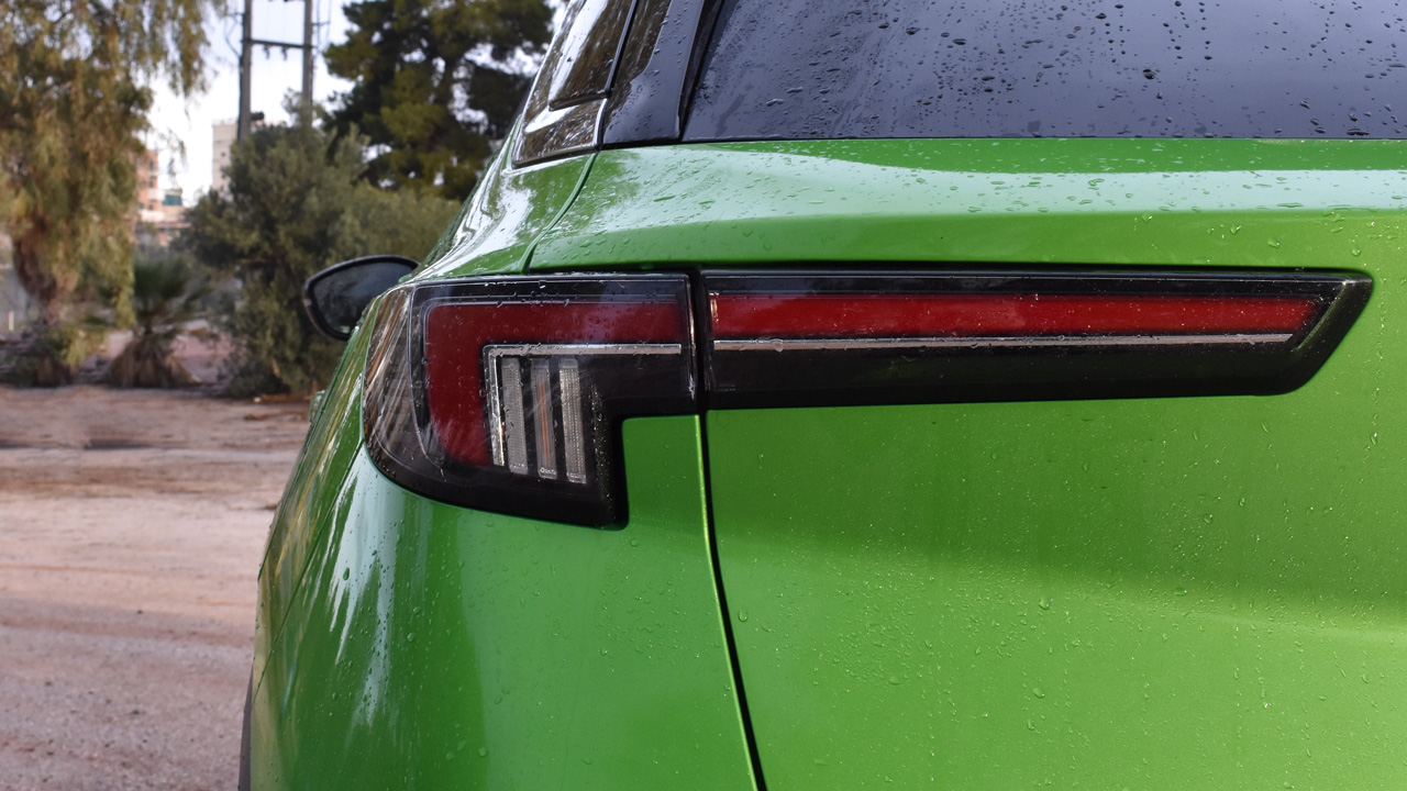 Ξεκινάμε από την εξωτερική εμφάνιση του ηλεκτρικού μοντέλου. Είναι άμεσα αντιληπτό ότι οι διαφορές συγκριτικά με τις “συμβατικές” εκδόσεις είναι ελάχιστες. Οι πιο παρατηρητικοί θα διαπιστώσουν ότι στο εμπρός τμήμα δεν υπάρχουν οι γρίλιες για την εισαγωγή του αέρα, μιας και δεν υπάρχουν ανάγκες ψύξης, ενώ στην μεσαία κολώνα (B-Pillar) και στο πίσω μέρος υπάρχει το γράμμα “e”. Κατά τα άλλα, το Opel Mokka-e ακολουθεί την σύγχρονη σχεδιαστική φιλοσοφία της εταιρείας, με την piano black μάσκα (Opel Visor) να είναι σήμα κατατεθέν. Τα λεπτά LED φωτιστικά σώματα που έχουν τοποθετηθεί αρκετά ψηλά, δημιουργούν μία άκρως “sportive” φιλοσοφία. Παρόμοια φιλοσοφία ακολουθείται και στο υπόλοιπο αμάξωμα, με στοιχεία όπως η διχρωμία (μαύρη οροφή και καπό) και οι εντυπωσιακές ζάντες αλουμίνιου 18 ιντσών (έκδοση ULTIMATE). Μην ξεχνάμε, βέβαια, ότι έχουμε να κάνουμε και με ένα crossover, οπότε όπως είναι λογικό υπάρχουν πλαστικές επενδύσεις στο κάτω μέρος του αμαξώματος. Όσον αφορά τώρα στις διαστάσεις, δεν διαφοροποιούνται καθόλου συγκριτικά με τις άλλες εκδόσεις. Συνεπώς το νέο Opel Mokka-e έχει μήκος 4.151 χλστ., πλάτος 1.791 χλστ. και ύψος 1.534 χλστ.