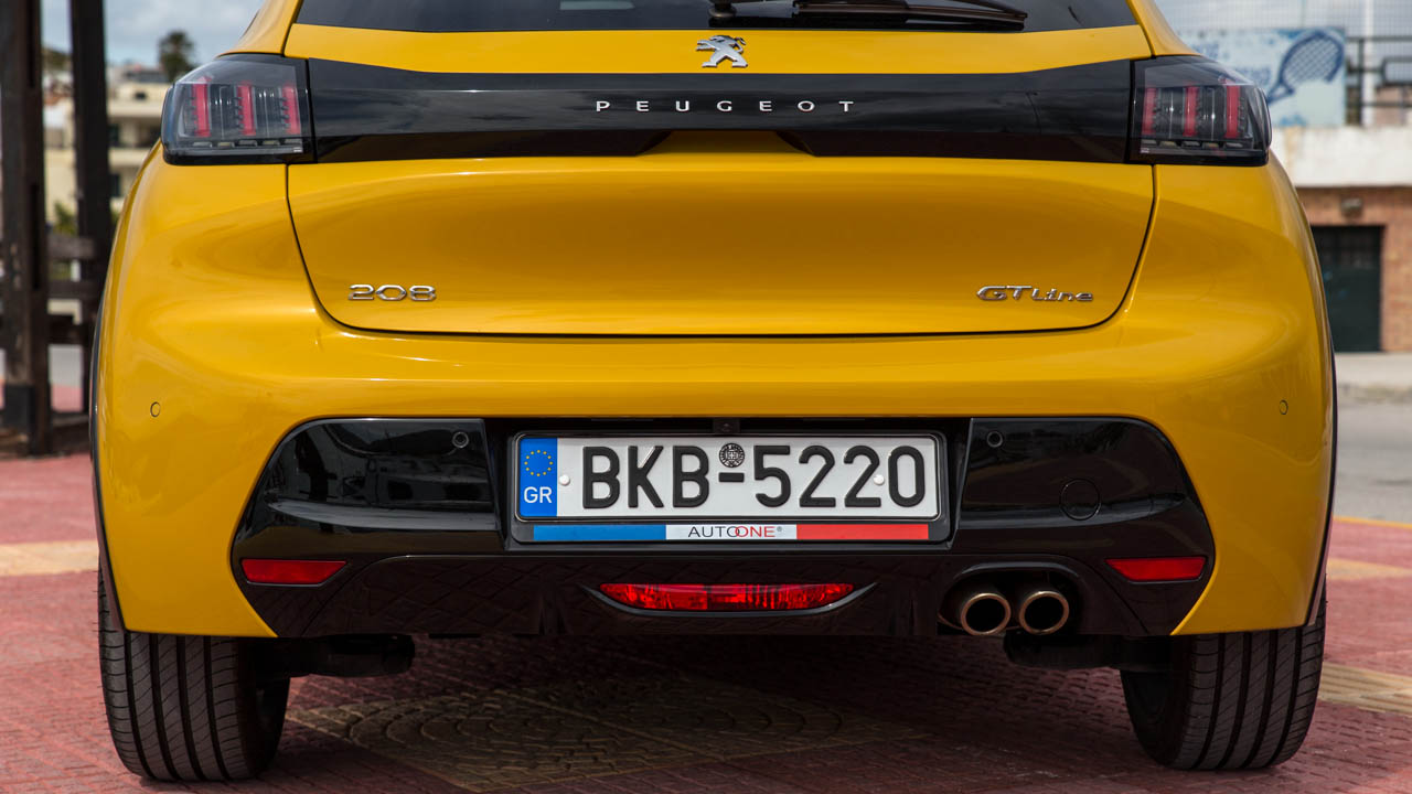 Η έκδοση GT Line που βρίσκεται και στην κορυφή της γκάμας του Peugeot αναφορικά με τον εξοπλισμό άνεσης και ασφάλειας ξεχωρίζει από τις υπόλοιπες και στο αισθητικό κομμάτι. Το μαύρο γυαλιστερό πλαστικό κάνει την εμφάνιση του, στα τόξα των τροχών, στο κάτω μέρος του πίσω προφυλακτήρα αλλά και στη μαύρη φάσα που ενώνει οπτικά τα φωτιστικά σώματα, στο πλαίσιο της μάσκας αλλά και στα καλύμματα των καθρεπτών. Σε συνδυασμό με την αεροτομή της οροφής που αποτελεί επίσης μέρος του εξοπλισμού το 208 αποκτά μια πιο σπορ όψη που ταιριάζει στον μοντέρνο και επιθετικό του σχεδιασμό.