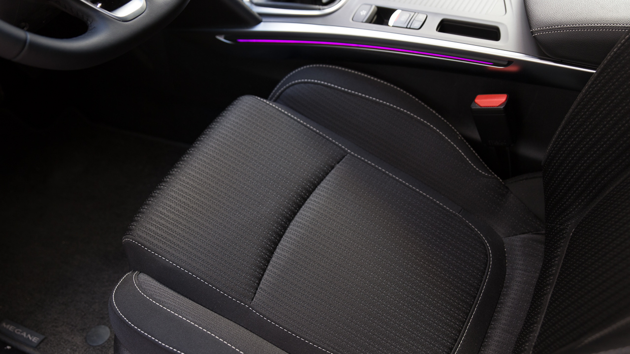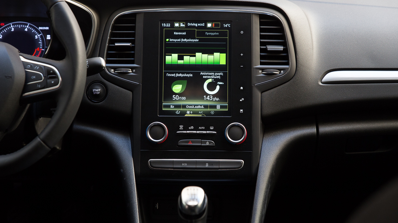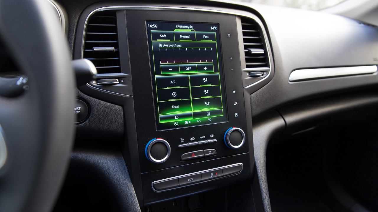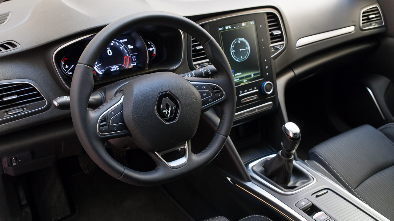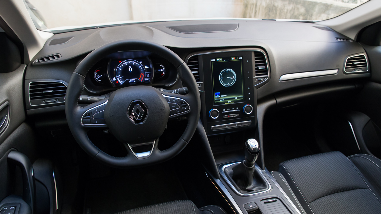 Το εσωτερικό του Megane αν και δεν έχει δεχτεί αλλαγές από την παρουσίαση του μοντέλου το 2016, παραμένει ελκυστικό αισθητικά. Η μεγάλη και κάθετα τοποθετημένη οθόνη αφής των 8,7 ιντσών να προσδίδει μια έξτρα hi-tech αίσθηση στο ταμπλό που ενισχύεται από τον ψηφιακό πίνακα πληροφοριών του οδηγού. Ο τελευταίος μπορεί να αλλάξει τον τρόπο απεικόνισης των πληροφοριών και στις δύο περιπτώσεις, όπως και τα χρώματα τους, αλλά και να τα αντιστοιχίσει ή όχι με τα χρώματα του σοφιστικέ ατμοσφαιρικού φωτισμού που δίνει άλλη “αύρα” στην καμπίνα του Megane. Οδηγός και συνοδηγός κάθονται σε πολύ αναπαυτικά καθίσματα που στηρίζουν σωστά την πλάτη και προσφέρουν καλύ πλευρική στήριξη χωρίς να χαρακτηρίζονται σπορ. Άνεση απολαμβάνουν και οι δύο πίσω επιβαίνοντες. Στην ανάγκη θα χωρέσει και ένας κανονικού μεγέθους επιβάτης, ενώ όλοι τους έχουν επαρκή χώρο για τα γόνατα και το κεφάλι τους. Επαρκής χαρακτηρίζεται και ο χώρος αποσκευών των 384 λίτρων που μπορεί να φτάσει έως και τα 1.247 λίτρα με την αναδίπλωση των καθισμάτων.