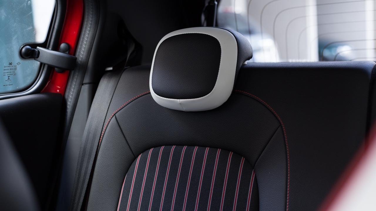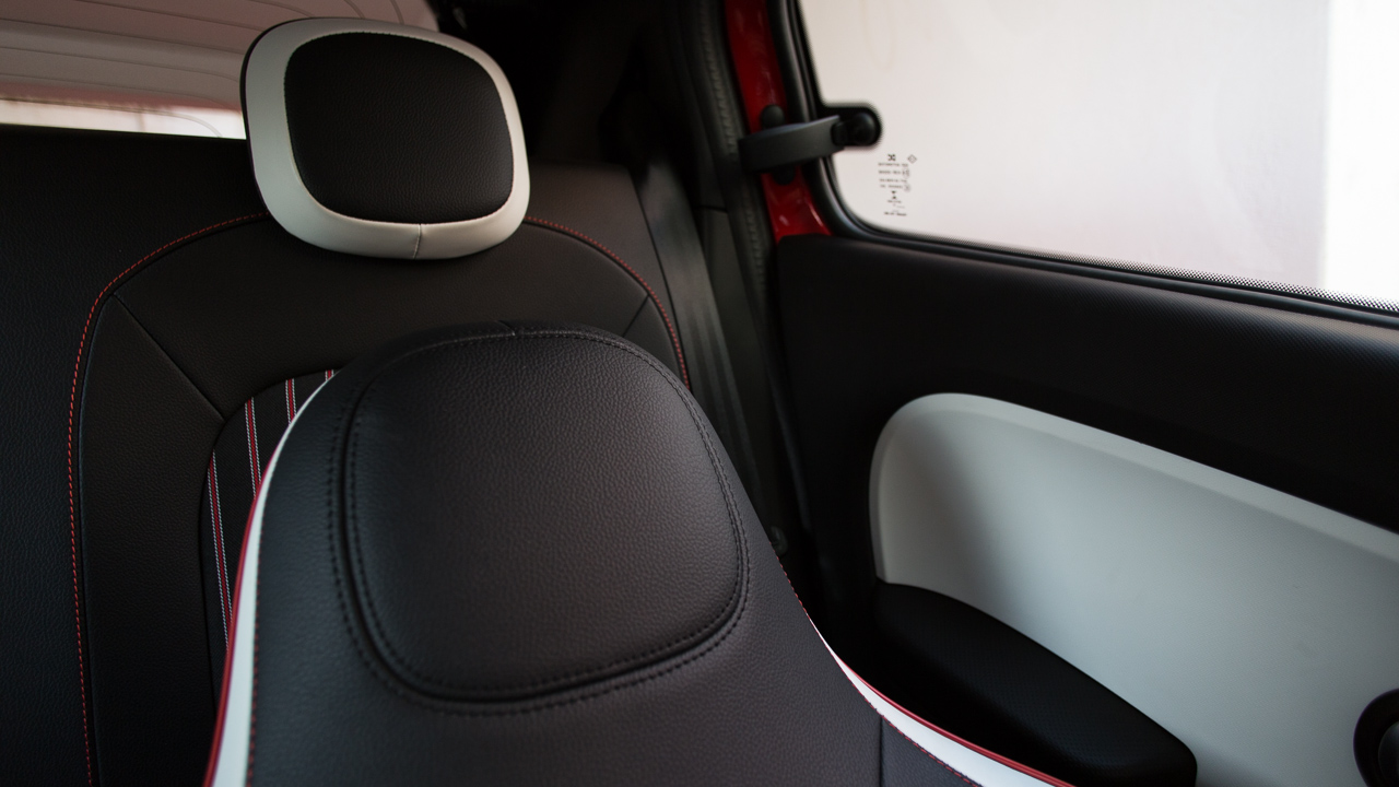 Η χαριτωμένη και μοντέρνα εξωτερική σχεδίαση του μοντέλου της γαλλικής εταιρίας συνεχίζεται και στο εσωτερικό του, το οποίο συναγωνίζεται στα ίσια τις γραμμές του αμαξώματος. “Παιχνιδιάρικες” γραμμές, που δεν δημιουργούν ενστάσεις στην εργονομία, λεπτομέρειες με γαλλική υπογραφή και δερμάτινα καθίσματα που σε κερδίζουν αμέσως με την αισθητική τους είναι μερικά από τα στοιχεία που δεν σε αφήνουν να κατασταλάξεις αν τελικά θες το Twingo για το “μέσα” ή για το ΄”έξω” του. Είναι πάντως μια από τις καμπίνες που κερδίζουν τις εντυπώσεις στην κατηγορία σου δείχνουν από την αρχή πως θα τις χαίρεσαι καθημερινά, όχι μόνο για τις ανέσεις αλλά και για την αισθητική τους τη στιγμή που η ποιότητα κατασκευής βρίσκεται σε γενικές γραμμές σε καλά επίπεδα.