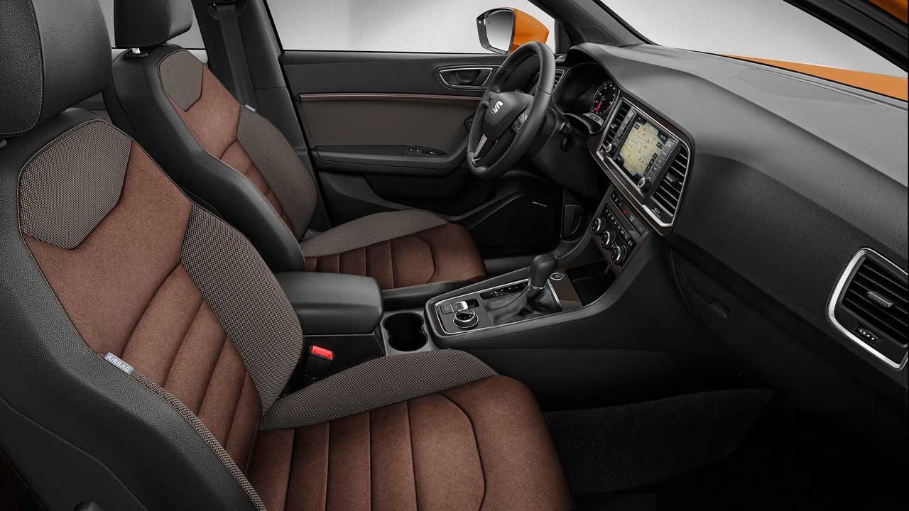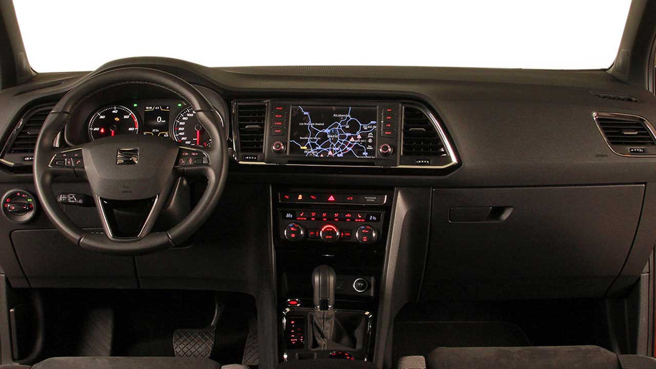 Θα λέγαμε πως το εσωτερικό του Seat Ateca ακολουθεί την ίδια σχεδιαστική φιλοσοφία με το αμάξωμα. Γνώριμες γραμμές από τα υπόλοιπα μοντέλα της μάρκας (θυμίζει αρκετά το Leon), σχηματίζουν “καθαρές” επιφάνειες, που απαρτίζονται από καλής ποιότητας υλικά και σχηματίζουν ένα εργονομικό σύνολο. Στη βασική του έκδοση, το ηχοσύστημα διαθέτει έγχρωμη οθόνη αφής 6,5 ιντσών, ενώ στις εκδόσεις Xcellence και FR αυτή είναι 8,0 ιντσών και διαθέτει και πλοήγηση. Κατά τα άλλα η χρήση της είναι εύκολη, τα γραφικά της πολύ καλά και η απόκρισή της ικανοποιεί πλήρως. Ο πίνακας οργάνων είναι ευανάγνωστος και πλήρης ενδείξεων. Οι μεγάλες γυάλινες επιφάνειες χαρίζουν πολύ καλή περιμετρική ορατότητα, ενώ οι χώροι είναι σε πολύ καλό επίπεδο, καθώς μπορούν να φιλοξενηθούν ακόμη και πέντε ενήλικες μετρίου αναστήματος. Θήκες για μικροαντικείμενα υπάρχουν πολλές και είναι ευρύχωρες. Το πορτμπαγκάζ είναι στα 510 λίτρα.