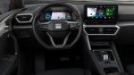 Περνώντας στην καμπίνα του νέου Seat Leon, εξακολουθεί να είναι εμφανής η “sportive” διάθεση της εταιρείας. Η ποιότητα της κεντρικής κονσόλας είναι ικανοποιητική, με τις άνω επιφάνειες να είναι ιδιαίτερα μαλακές στην υφή, ενώ η μονοτονία “σπάει” με αλουμινένια διακοσμητικά στοιχεία. Εκεί συναντάμε και την ψηφιακή οθόνη αφής, η οποία στην έκδοση FR του αυτοκινήτου δοκιμής φτάνει σε μέγεθος τις 10 ίντσες. Μέσω αυτής, γίνονται όλες οι απαραίτητες ρυθμίσεις, αλλά και η πληροφόρηση του οδηγού. Ενδεικτικά, από την οθόνη επιλέγεται το “προφίλ” οδήγησης, γίνονται οι ρυθμίσεις σχετικά με τη λειτουργία του υβριδικού συστήματος, ενώ υπάρχει σύστημα πλοήγησης και κάμερα οπισθοπορείας. Εννοείται πως για την συνδεσιμότητα διατίθενται εφαρμογές Android Auto και Apple CarPlay, ενώ μέσω της οθόνης ρυθμίζεται και το σύστημα κλιματισμού. Κάπου εδώ, αξίζει να τονίσουμε ότι θα θέλαμε και κάποιους φυσικούς διακόπτες, π.χ. για τον κλιματισμό ή τη ρύθμιση της έντασης ήχου. Μία ακόμα οθόνη βρίσκεται πίσω από το τιμόνι, το μέγεθος της είναι 10,25 ίντσες και κατέχει τον ρόλο του πίνακα οργάνων, ενημερώνοντας τον οδηγό με σαφείς ενδείξεις.