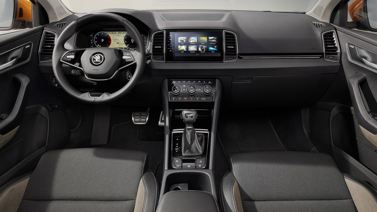 Περνώντας στο εσωτερικό του ανανεωμένου Skoda Karoq, η μεγαλύτερη ανανέωση έρχεται με το νέο τιμόνι της τσέχικης εταιρείας με τους δύο βραχίονες. Το έχουμε συναντήσει και σε άλλα νέα μοντέλα της εταιρείας, όπως τις Octavia και Fabia. Το περιβάλλον είναι σύγχρονο, ποιοτικό, αλλά και… άκρως ψηφιακό. Πίσω από το τιμόνι υπάρχει μία μεγάλη οθόνη 10,25 ιντσών σε ρόλο πίνακα οργάνων (προαιρετικός εξοπλισμός), ενώ στο κέντρο του ταμπλό υπάρχει αυτή που αναλαμβάνει την ενημέρωση και ψυχαγωγία των επιβατών με μέγεθος 9,2 ίντσες (8,0″ στον στάνταρ εξοπλισμό). Ο τομέας στον οποίο αξίζει να δώσουμε έμφαση, όμως, είναι αυτός της πρακτικότητας. Σε όλη την καμπίνα υπάρχουν διάσπαρτες θήκες για μικροαντικείμενα, οι οποίες θα βολέψουν όλους τους επιβάτες, ενώ για τους πίσω επιβάτες υπάρχουν και τραπεζάκια αεροπορικού τύπου. Επίσης, τα καθίσματα προσφέρουν “αυτόματη” αναδίπλωση με δύο μοχλούς που βρίσκονται σε πολύ πρακτικό σημείο εντός του χώρου αποσκευών, κοντά στην πόρτα. Πρακτικότητα τέλος προσφέρει και το μεγάλο κεντρικό υποβραχιόνιο, του πίσω καθίσματος που ανοίγει ολόκληρο και δημιουργεί μια μεγάλη σε ύψος και πλάτος τρύπα για να μεταφέρετε με άνεση και ιδιαίτερα μακριά σε μήκος αντικείμενα, όπως είναι για παράδειγμα τα πέδιλα για ski. Ιδιαίτερες συστάσεις για τους χώρους των επιβατών δεν χρειάζονται. Χωρίς παραχωρήσεις, είναι εφικτό να ταξιδέψουν ακόμα και πέντε ενήλικες επιβάτες, με το “άνοιγμα” για κεφάλι και πόδια να είναι επαρκές στην πίσω σειρά καθισμάτων.