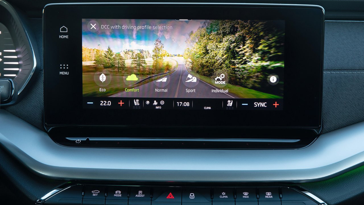Περνώντας στο εσωτερικό της Skoda Octavia, από το άνοιγμα την πόρτας του οδηγού γίνεται αισθητή η στιβαρή κατασκευή του. Σχεδόν σε κάθε επιφάνεια συναντάμε μαλακές επενδύσεις, ενώ αρκετές νίκελ λεπτομέρειες δημιουργούν ένα αρκετά μοντέρνο αποτέλεσμα. Πάμε στο ψηφιακό περιβάλλον της Skoda Octavia, με την έκδοση της δοκιμής να φέρει δύο ψηφιακές οθόνης. Η πρώτη βρίσκεται πίσω από το εντυπωσιακό σχεδιαστικά τιμόνι με δύο ακτίνες και το μέγεθός της αγγίζει τις 10,25 ίντσες. Ονομάζεται “Virtual Cockpit” και ουσιαστικά αναλαμβάνει τον ρόλο του πίνακα οργάνων. Η δεύτερη οθόνη είναι αφής και αναλαμβάνει ρόλο Infotainment με το μέγεθός της να φτάνει τις 10 ίντσες. Μέσα από αυτήν απεικονίζεται εκτός των άλλων η κάμερα οπισθοπορείας, οι ρυθμίσεις του συστήματος κλιματισμού και επιλέγεται το πρόγραμμα οδήγησης (Eco, Comfort, Normal, Sport και Individual). Ακριβώς από κάτω υπάρχει μία “μπάρα αφής” για την ένταση του ήχου. Eνδιαφέρουσα λεπτομέρεια!