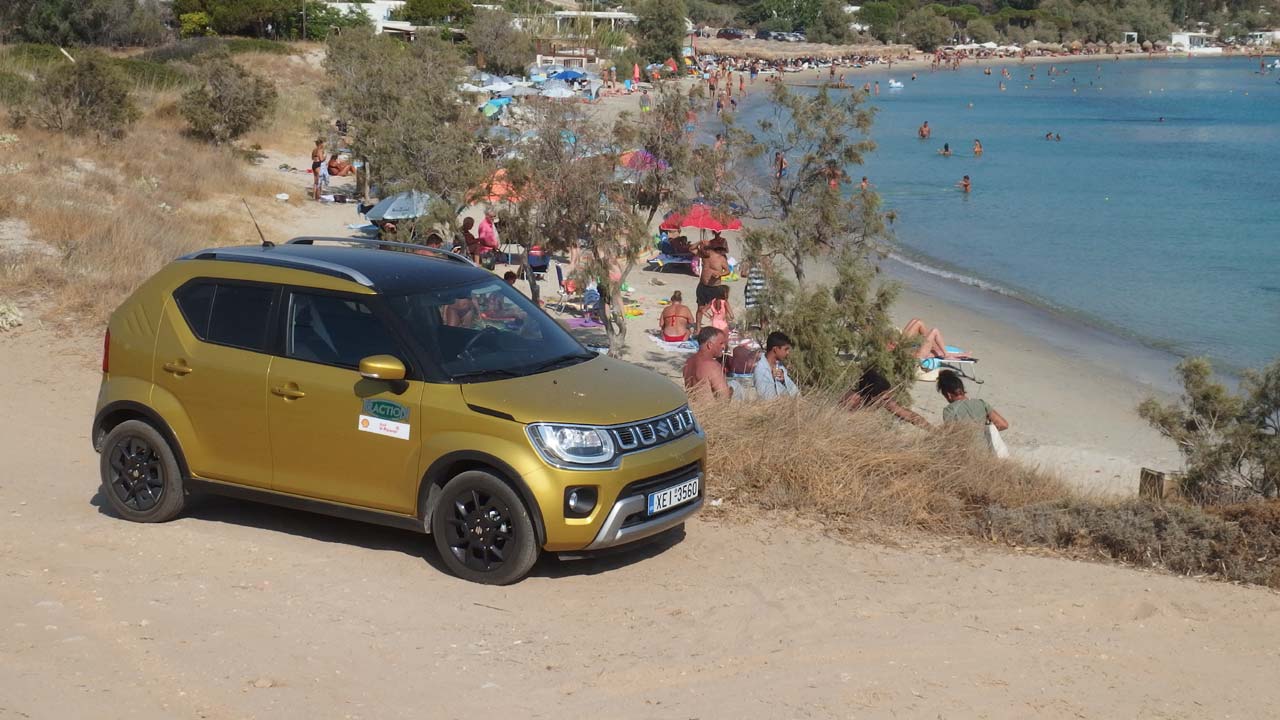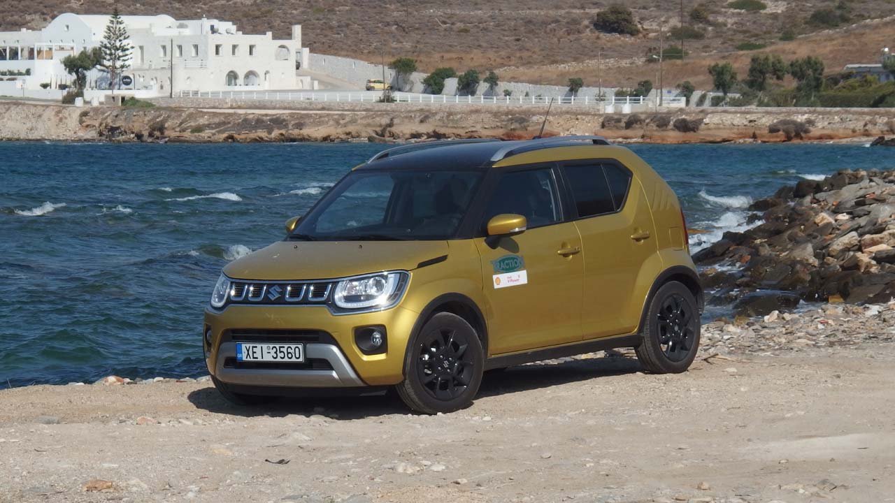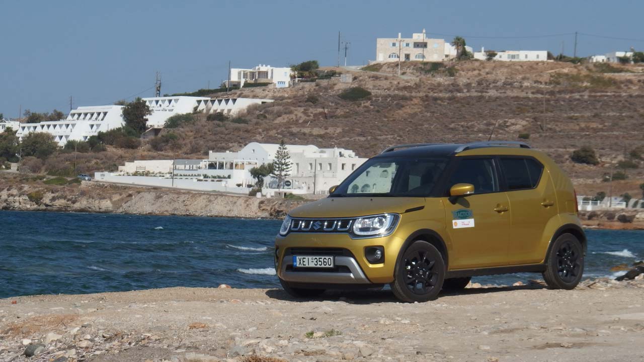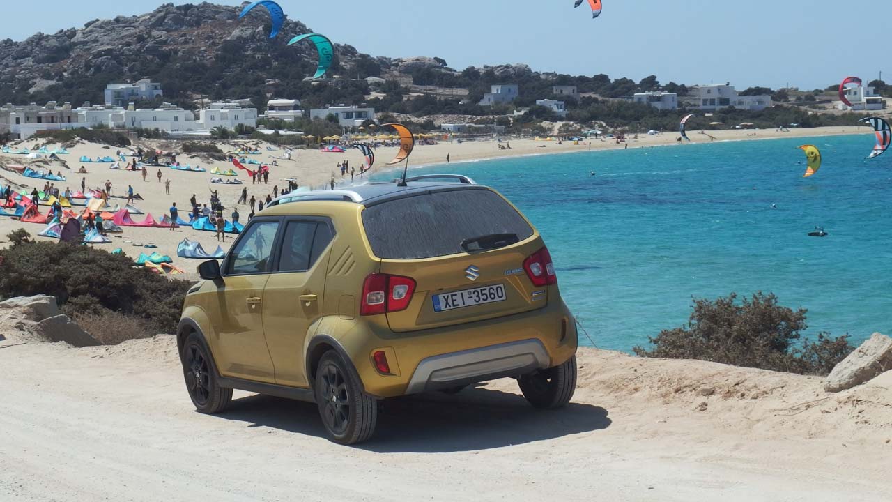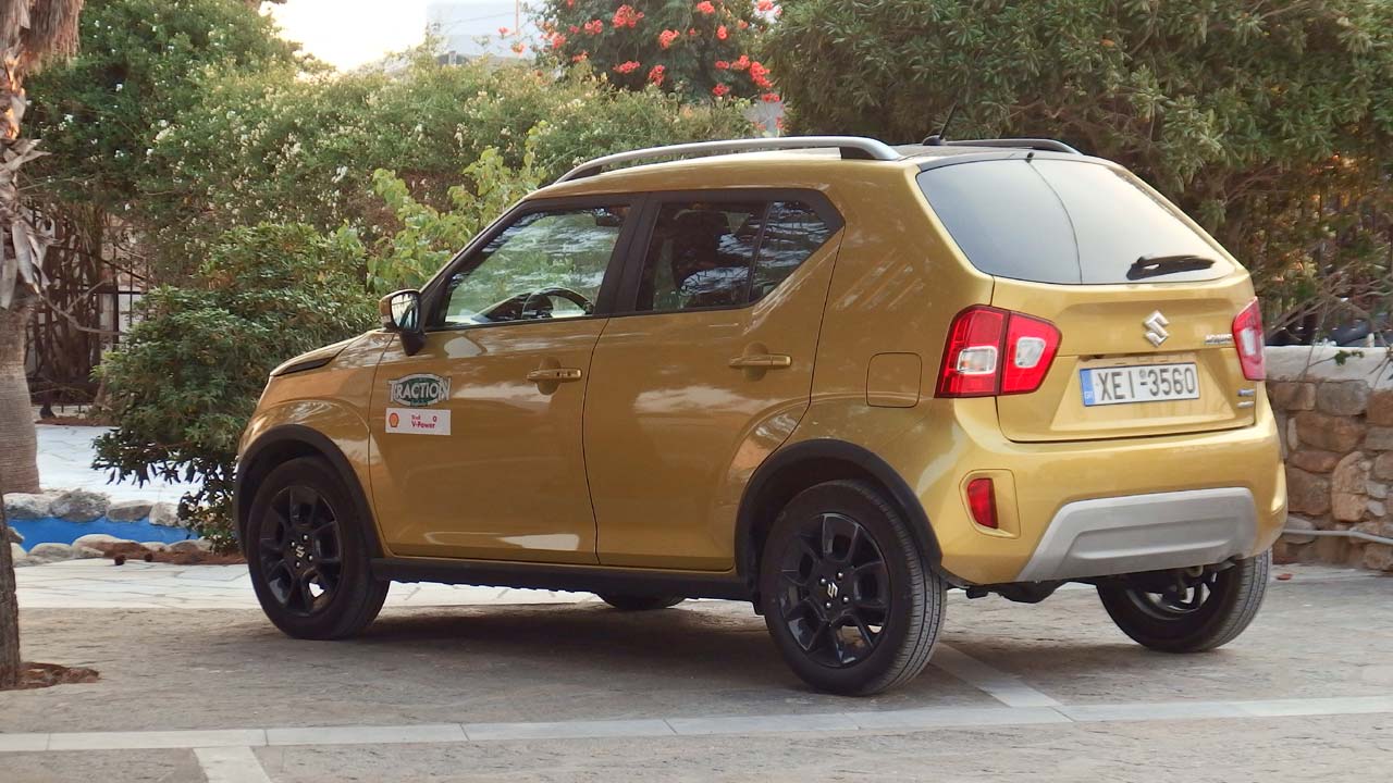 Η αίσθηση της επιτάχυνσης και η απόκριση του γκαζιού στο χαμηλομεσαίο εύρος περιστροφής είναι παραπάνω από ικανοποιητικές. Το μεγάλο όφελος όμως δεν εντοπίζεται στις επιδόσεις οι οποίες είναι οριακά καλές (0-100 χλμ./ώρα σε 12,8 δευτερόλεπτα, τελική ταχύτητα 165 χλμ./ώρα), αλλά στην βελτιστοποίηση της κατανάλωσης και των εκπεμπόμενων ρύπων (5,4 λίτρα/100 χλμ. και 121-122 γρ. CO2/χλμ. αντίστοιχα, ανακοινώνει η Suzuki). Τιμή που δεν ξεφεύγει πολύ σε πραγματικές συνθήκες οδήγησης, όπου και κινήθηκα με μέση κατανάλωση 5,0 λίτρα/100 χλμ. και κάνοντας συνολικά 1.000 χλμ. σε χώμα, άσφαλτο, αυτοκινητόδρομο και μπόλικο περιφερειακό δίκτυο και αρκετή κίνηση στα λιμάνια του Πειραιά, της Νάξου και της Πάρου (και φυσικά με τον κλιματισμό να δουλεύει υπερωρίες). Ακόμη μία ευχάριστη έκπληξη που περιμένει να την ανακαλύψεις, είναι η οδική συμπεριφορά του Suzuki Ignis. Και αυτό γιατί το ιαπωνικό μοντέλο καταφέρνει να είναι ευκολοδήγητο στην πόλη χάρη στις μικρές διαστάσεις του και στον μικρό κύκλο στροφής των 9,4 μέτρων όπως προανέφερα. Η ανάρτησή του (Γόνατα McPherson εμπρός και άξονας τριών συνδέσμων πίσω) διακρίνεται για την καλή άνεση με την ποιότητα κύλισης να είναι σίγουρα στα συν. Το τιμόνι του θα θέλαμε να έχει καλύτερη επιστροφή αλλά αυτά είναι ψηλά γράμματα, ενώ τα φρένα θα μπορούσαν να έχουν περισσότερη υποβοήθηση κατά το πάτημα του πεντάλ (πίσω έχει ταμπούρα). Το πεντάρι κιβώτιο ταχυτήτων έχει μικρές και σαφείς διαδρομές, ενώ ακόμη και σε ακαριαίες αλλαγές δεν κομπιάζει κατά το κούμπωμα των σχέσεων. Όσον αφορά την τετρακίνησή του, το σύστημα AllGrip Auto το οποίο χρησιμοποιεί συνεκτικό συμπλέκτη, βελτιστοποιεί την πρόσφυση του αυτοκινήτου ανεξαρτήτως τερέν, μεταφέροντας ποσοστό της ροπής αυτόματα στους πίσω τροχούς, όταν ανιχνευθεί απώλεια πρόσφυσης στους εμπρός και το κάνει σχετικά άμεσα. Δεν είναι για hard core εκτός δρόμου. Σε κάθε παραλία όμως και ακόμη και σε βαθιά άμμο (έφτανε να καλύψει το προφίλ του ελαστικού) όταν το πάτησα δεν… μάσησε, παρά το γεγονός πως τα ελαστικά δεν ήταν τα κατάλληλα για τέτοια χρήση.