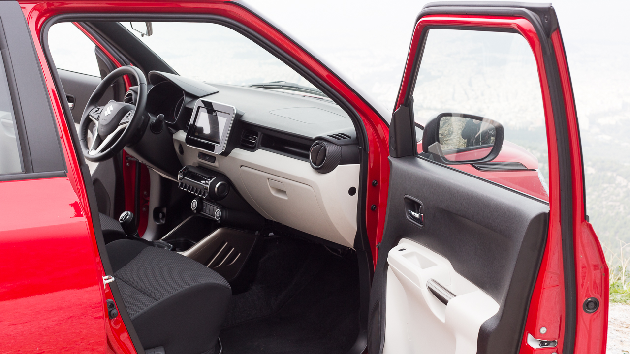 Η ευχάριστη σε σχεδίαση και φωτεινή καμπίνα του Ignis συνεχίζει να προκαλεί θετικές εντυπώσεις. Η επιλογή της Suzuki να δώσει λευκό χρώμα για το ταμπλό και τις επενδύσεις στις πόρτες περίπου από το μισό και κάτω εντείνει την αίσθηση ευρυχωρίας του μοντέλου των Ιαπώνων με την καμπίνα να χαρακτηρίζεται από την εξαιρετική εκμετάλλευση των χώρων. Τέσσερις ενήλικες δεν θα προβληματιστούν καθόλου εντός του Ignis με τα πίσω καθίσματα να σύρονται αλλά και να αλλάζουν την κλίση της πλάτης του, βελτιώνοντας και αυξάνοντας αντίστοιχα την άνεση των επιβατών ή τον διαθέσιμο χώρο στο πορτμπαγκάζ. Το τελευταίο παρουσιάζεται ακόμη μεγαλύτερο από εκείνο της τετρακίνητης έκδοσης και φτάνει συνολικά στα 260 λίτρα έναντι 204 λίτρων. Με τα πίσω καθίσματα αναδιπλωμένα η χωρητικότητα εκτινάσσεται στα 1.100 λίτρα.