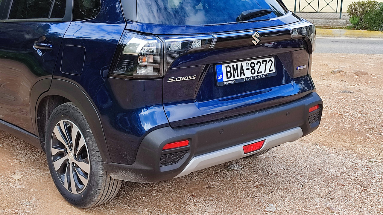 Tο ανανεωμένο Suzuki S-Cross έχει να επιδείξει τις ίδιες και αναλλοίωτες (σε σχέση με τον προκάτοχό του) μοντέρνες και επιθετικές ακμές και ένα πίσω μέρος με πολλή πληροφορία που προέρχεται από τα πολλά λογότυπα που σε ενημερώνουν για το αυτοκίνητο και την έκδοσή του. Τα φώτα με τα διάφανα “κρύσταλλα” διατρέχουν την πίσω πόρτα και ενώνονται μεταξύ τους ενώ προεξέχουν του αμαξώματος, χαρίζοντας μια πιο… χαρακτηριστική “νυχτερινή υπογραφή”. Αφήνοντας τα της σχεδίασης και περνώντας στις διαστάσεις του αμαξώματος, το μήκος του είναι στα 4.300 χλστ. ενώ πλάτος και ύψος είναι στα 1.785 και 1.580 χλστ. αντίστοιχα. Το μεταξόνιό του είναι στα 2.600 χλστ. ενώ η απόστασή του από το έδαφος είναι στα 175 χλστ.