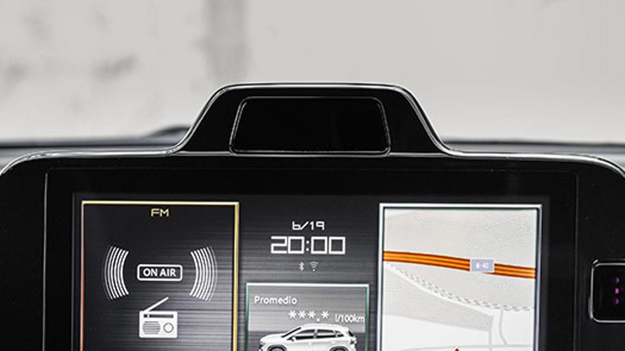 Τα υλικά που έχουν χρησιμοποιηθεί στο άνω μέρος του ταμπλό είναι ποιοτικά με το πλαστικό να είναι μαλακό, ενώ η συναρμογή τους είναι εξαιρετική και σε πείθει πως σε βάθος χρόνου δεν θα υπάρχουν τριγμοί που να προέρχονται από αυτά. Στις πόρτες, τα πάνελ των θυρών παραμένουν σκληρά. Στο κέντρο του ταμπλό υπάρχει έγχρωμη οθόνη αφής για το σύστημα πολυμέσων (με όλες τις σύγχρονες δυνατότητες συνδεσιμότητας) και κάμερα στο πάνω μέρος της για καταγραφή του οδηγού (Drive Monitoring System). Παρεμπιπτόντως αυτή είναι και η μοναδική σχεδιαστική (αν μπορούμε να την πούμε έτσι) αλλαγή στην καμπίνα. Λίγο πιο κάτω είναι οι αεραγωγοί, ο διακόπτης “αλάρμ” και κουμπί για την πίσω κάμερα (διαθέτει και περιμετρική λήψη του αυτοκινήτου) και μετά τα χειριστήρια του κλιματισμού, ο οποίος συνοδεύεται από οθόνη υγρών κρυστάλλων για τις απαραίτητες ενδείξεις θερμοκρασίας και κατεύθυνσης του αέρα. Εργονομικά είναι καλά μελετημένη η καμπίνα με διακόπτες και χειριστήρια σε σωστή απόσταση από τα ακροδάχτυλα του οδηγού (με εξαίρεση τους διακόπτες αριστερά, χαμηλά στο ταμπλό). Η χωρητικότητα της είναι και αυτή πολύ καλή. Τέσσερα άτομα θα βολευτούν άνετα, ενώ ο μεσαίος επιβάτης στο πίσω κάθισμα θα ενοχληθεί ελαφρώς από το τούνελ μετάδοσης, ανάμεσα στα πόδια του. Χώροι για αντικείμενα υπάρχουν αρκετοί στην καμπίνα και στις “τσέπες” των θυρών. Ο χώρος αποσκευών έχει “καθαρό” σχήμα και είναι χωρητικότητας 430 λίτρων, ενώ με την αναδίπλωση των πίσω καθισμάτων φτάνει στα 1.230 λίτρα.